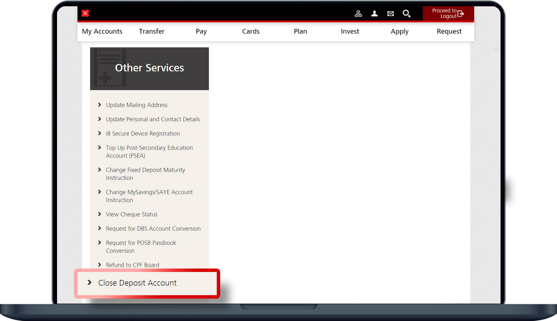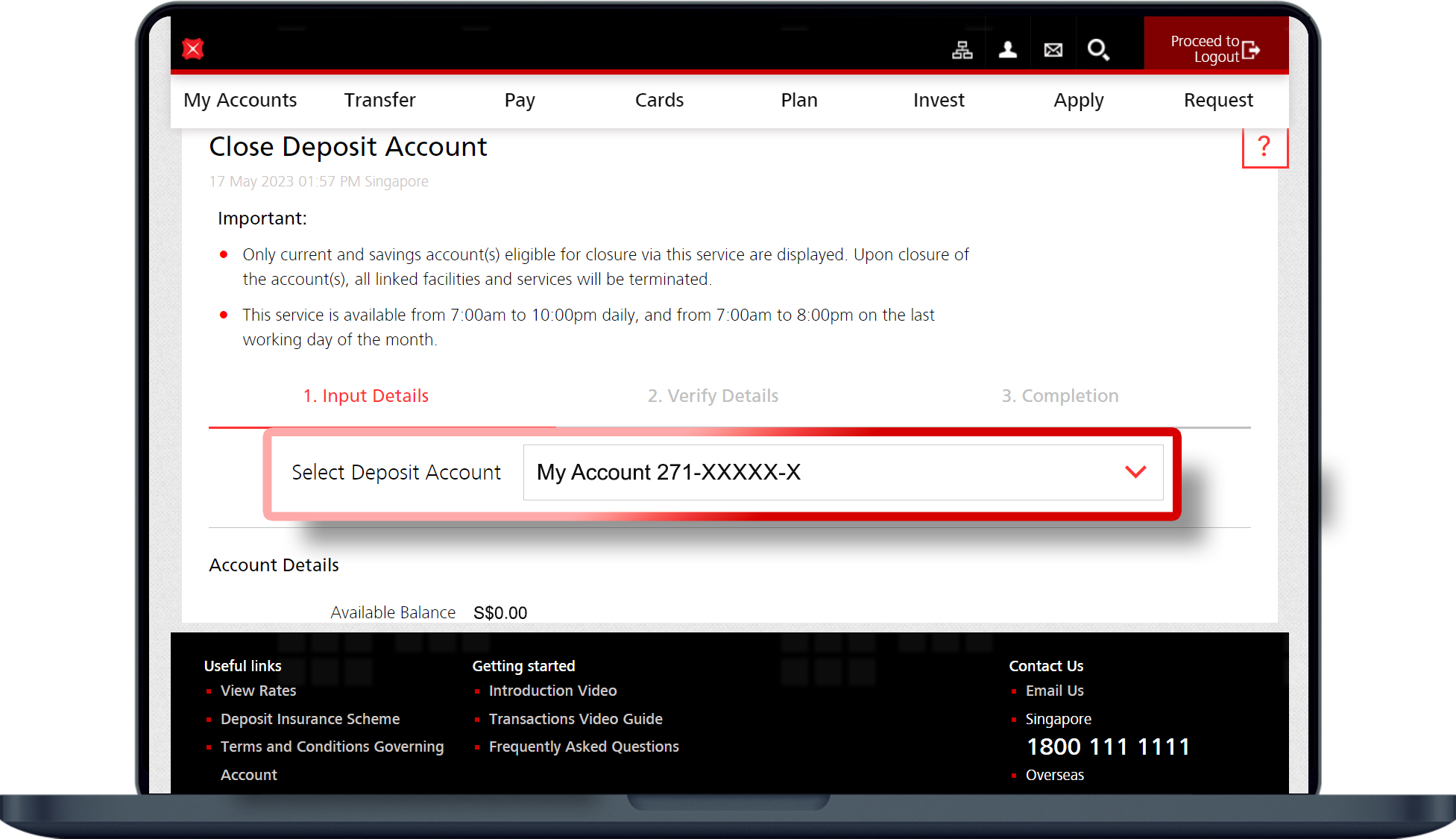 - Select the DBS/POSB Current / Savings Account that you wish to close.
