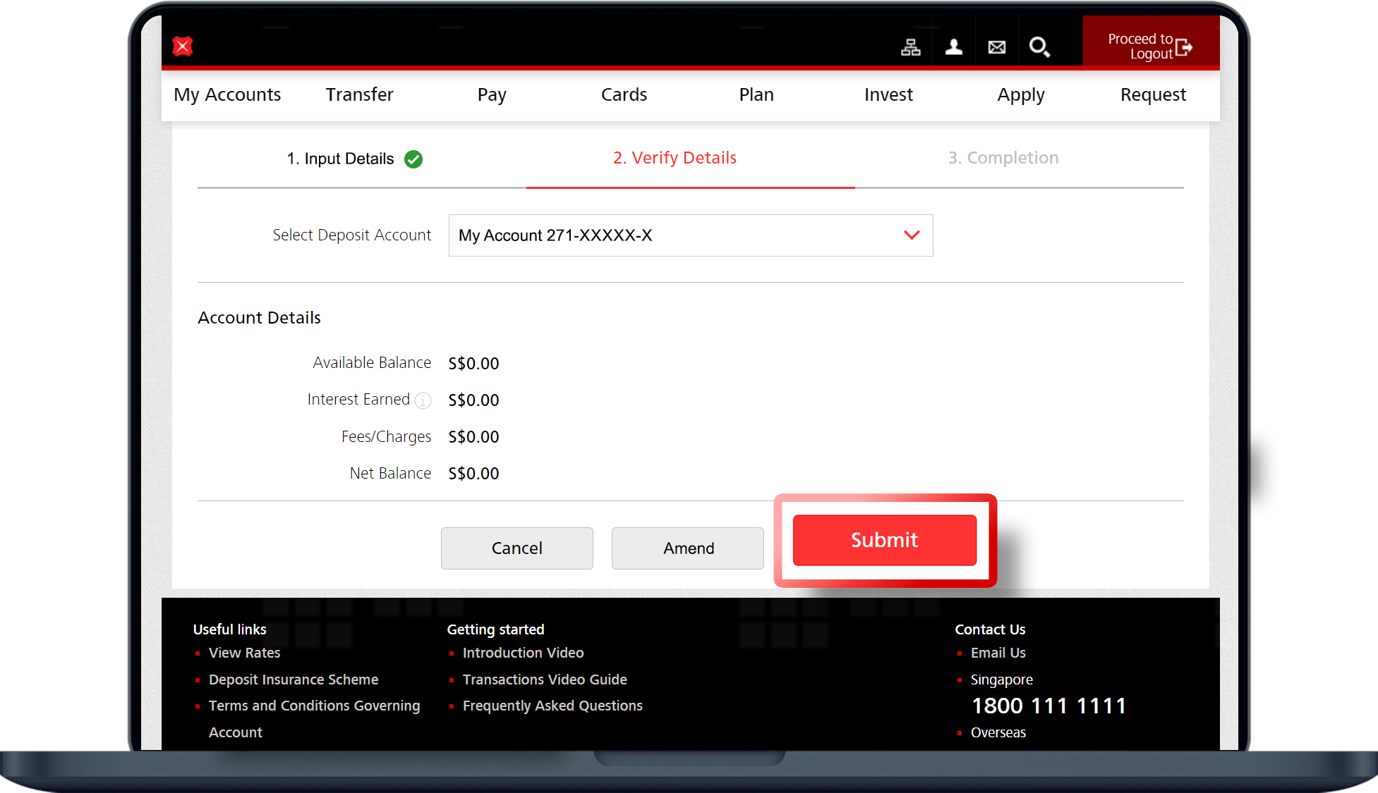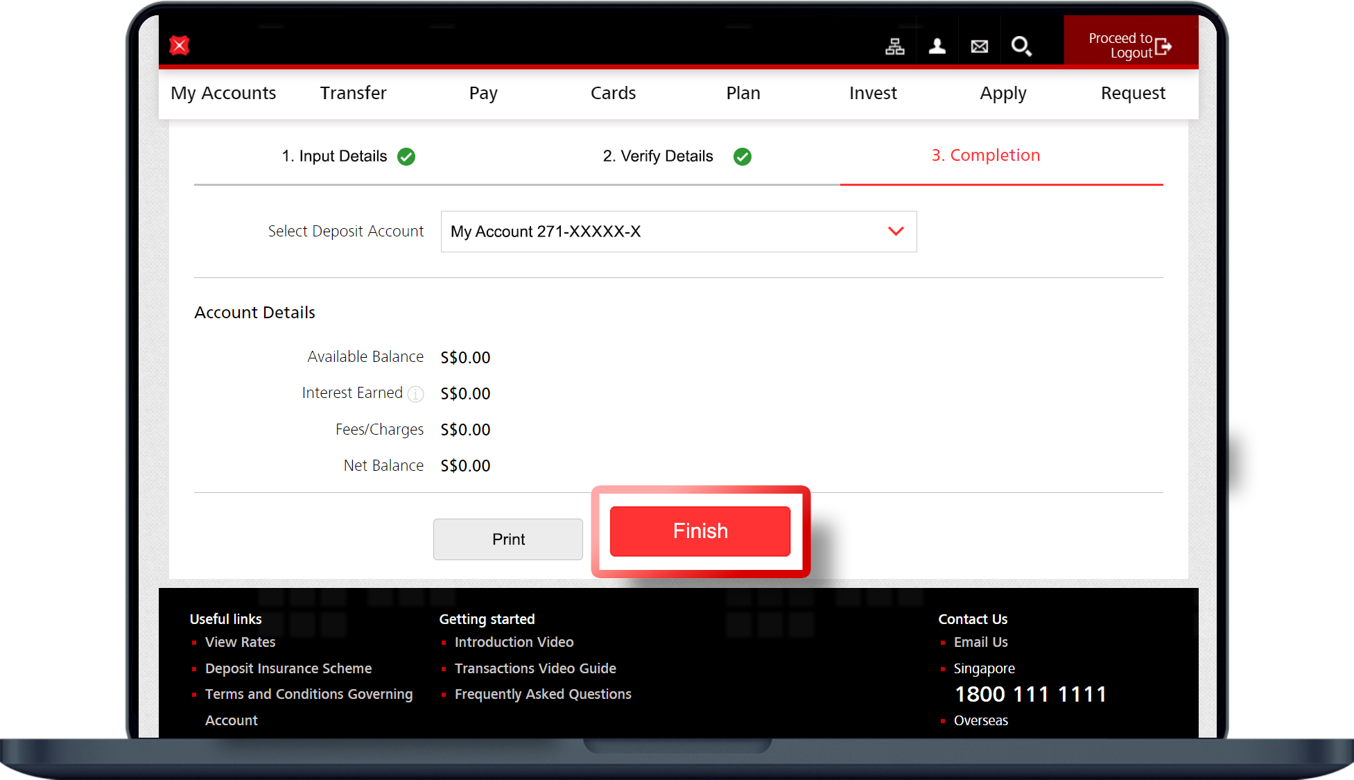 Account Closure will only happen if account’s available balance is zero. If the balance is negative or below $1, please top up to at least $1 and transfer the money out of your account before closing the account.