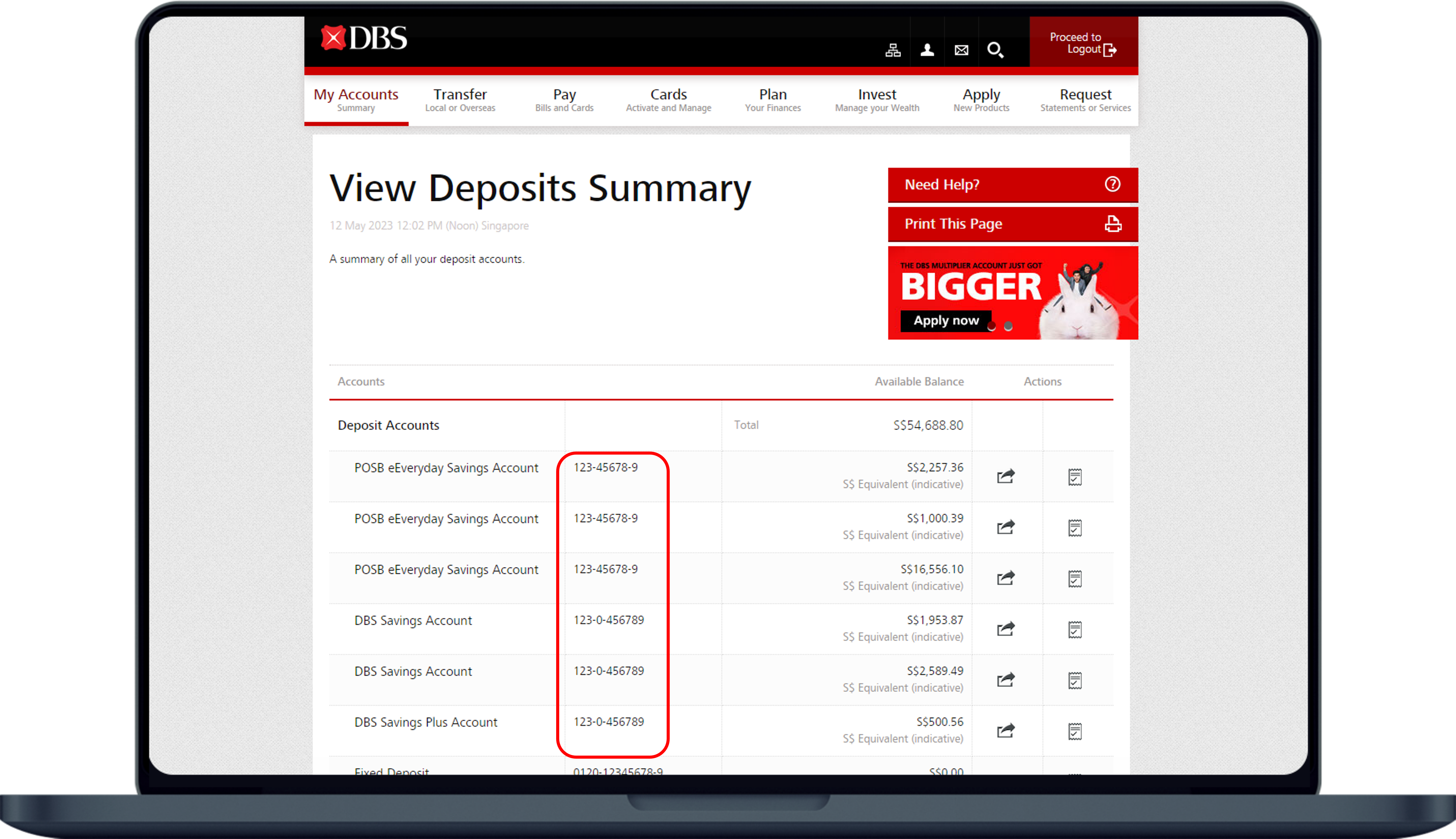 In case you do not use internet or mobile banking facilities, you can visit the nearest POSB/DBS ATM and conduct a cash transaction or check account balances with a mini statement.