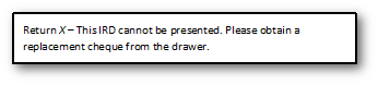 This means that the IRD cannot be re-deposited. To get your funds, please make alternative arrangements with the cheque issuer (e.g. fund transfer or write a new cheque).
