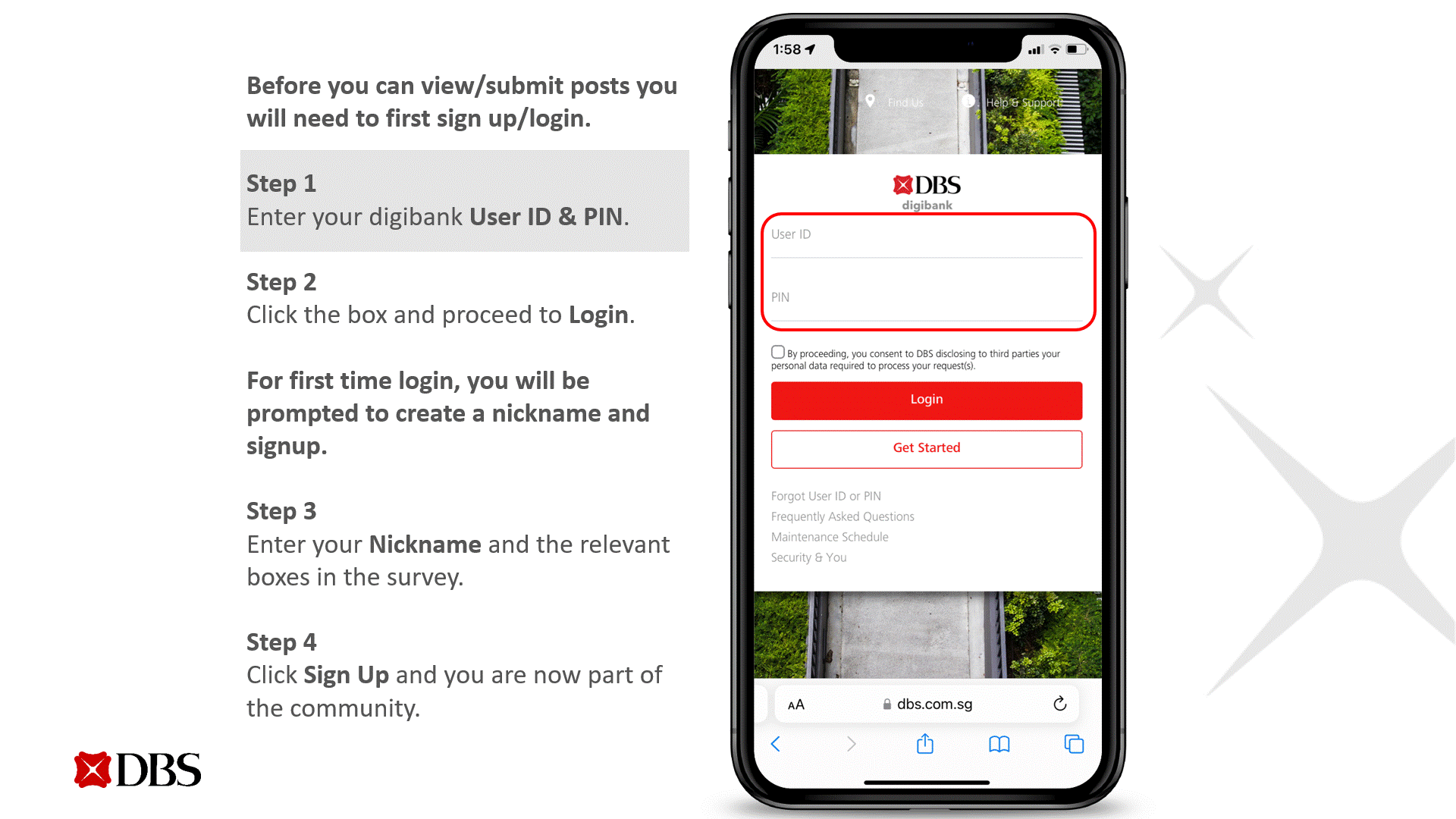 - Enter your NRIC, Debit or Credit Card Number followed by # to proceed.