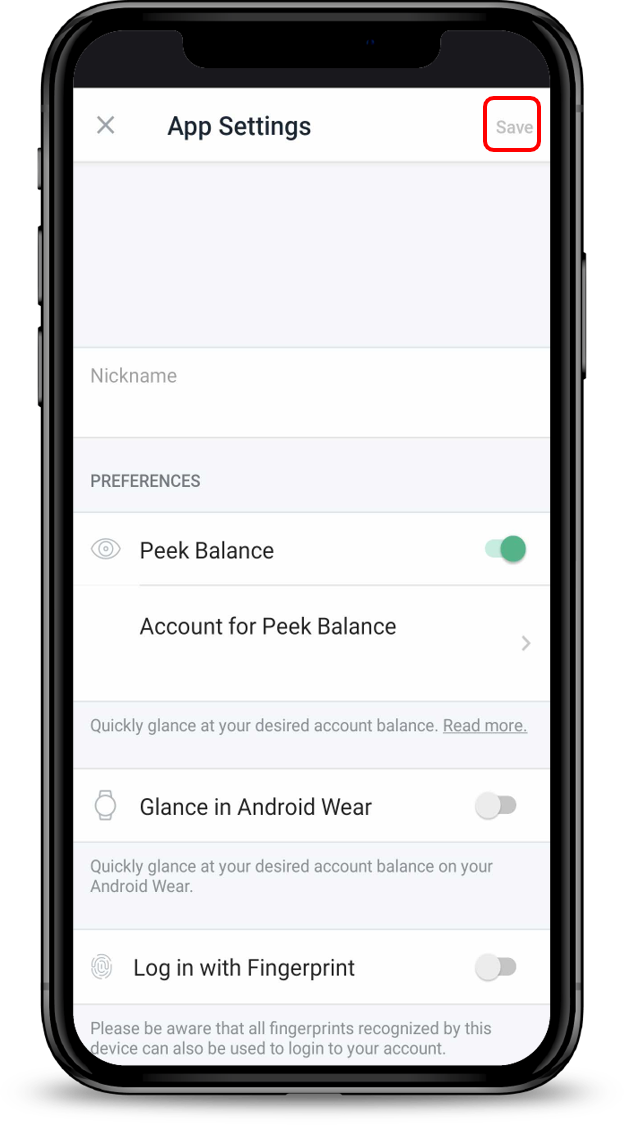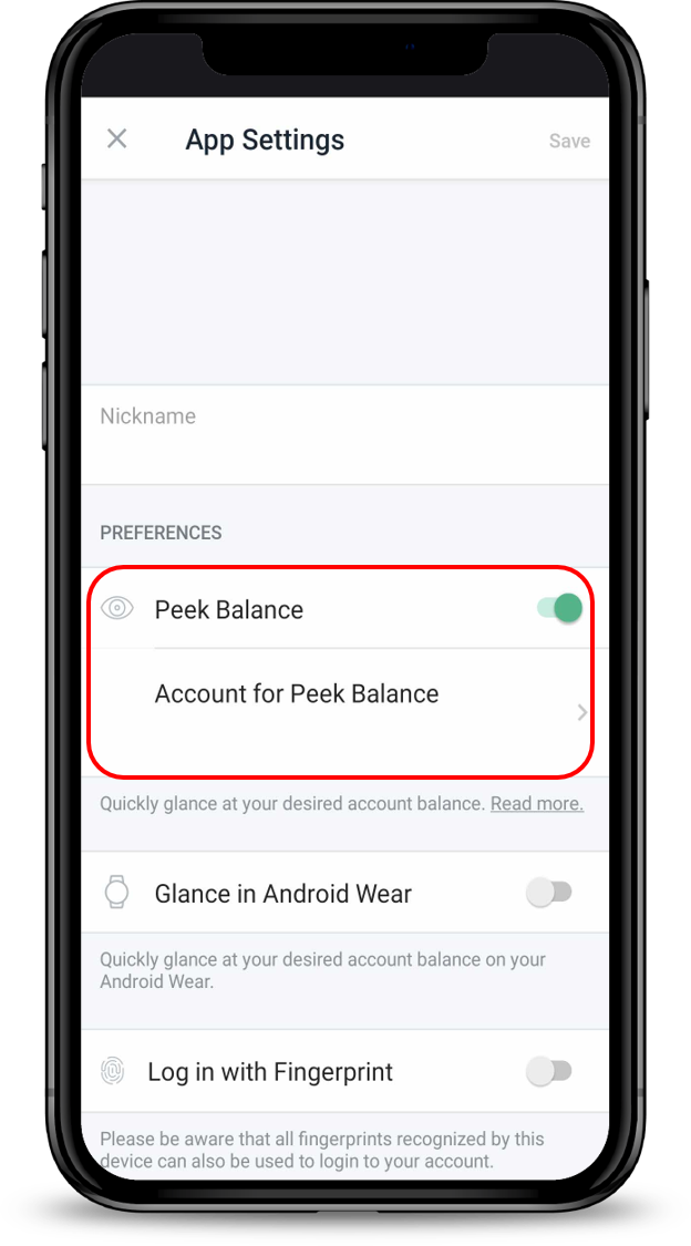Peek balance lets you check your preferred account balance with a simple swipe on your mobile device. No login required!