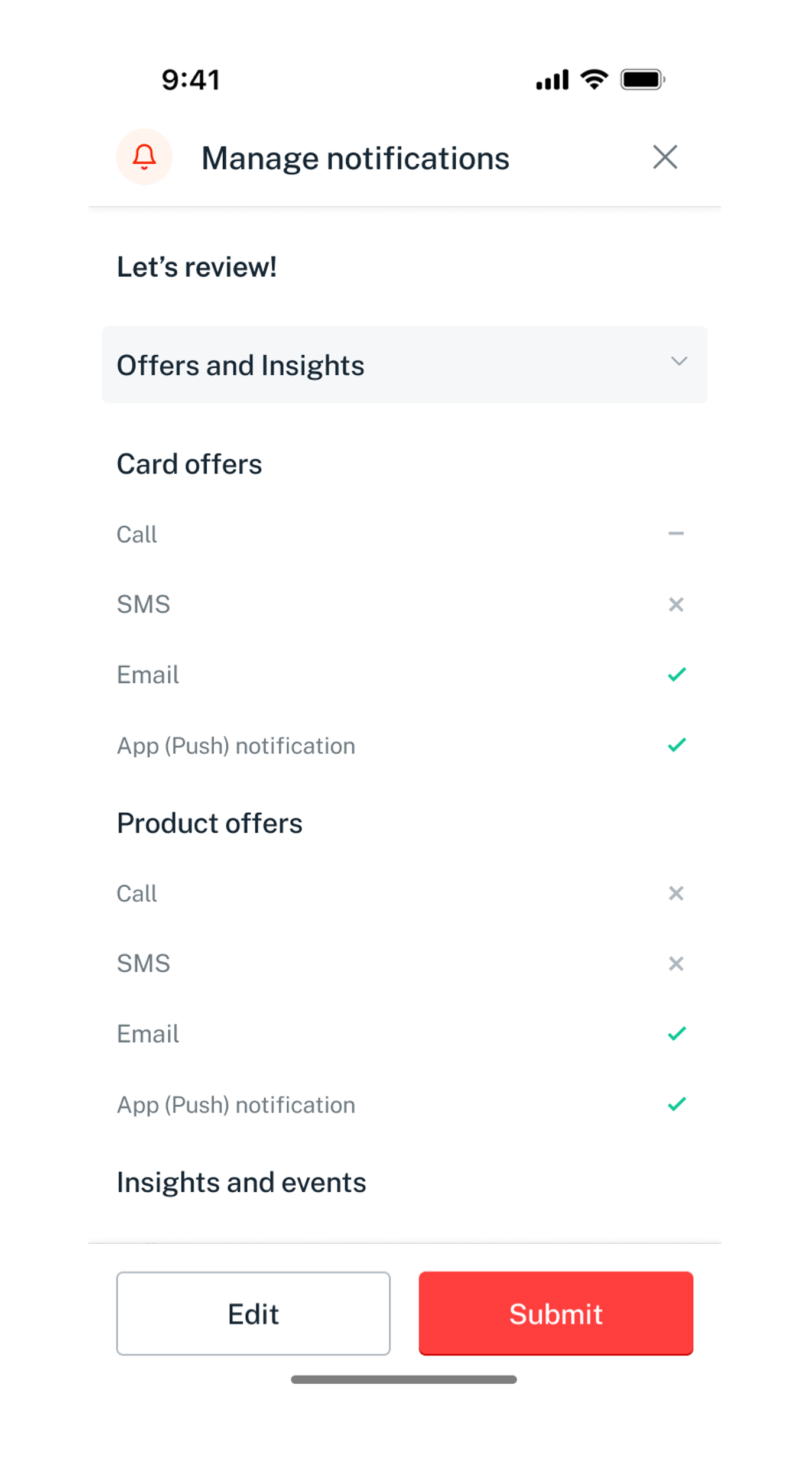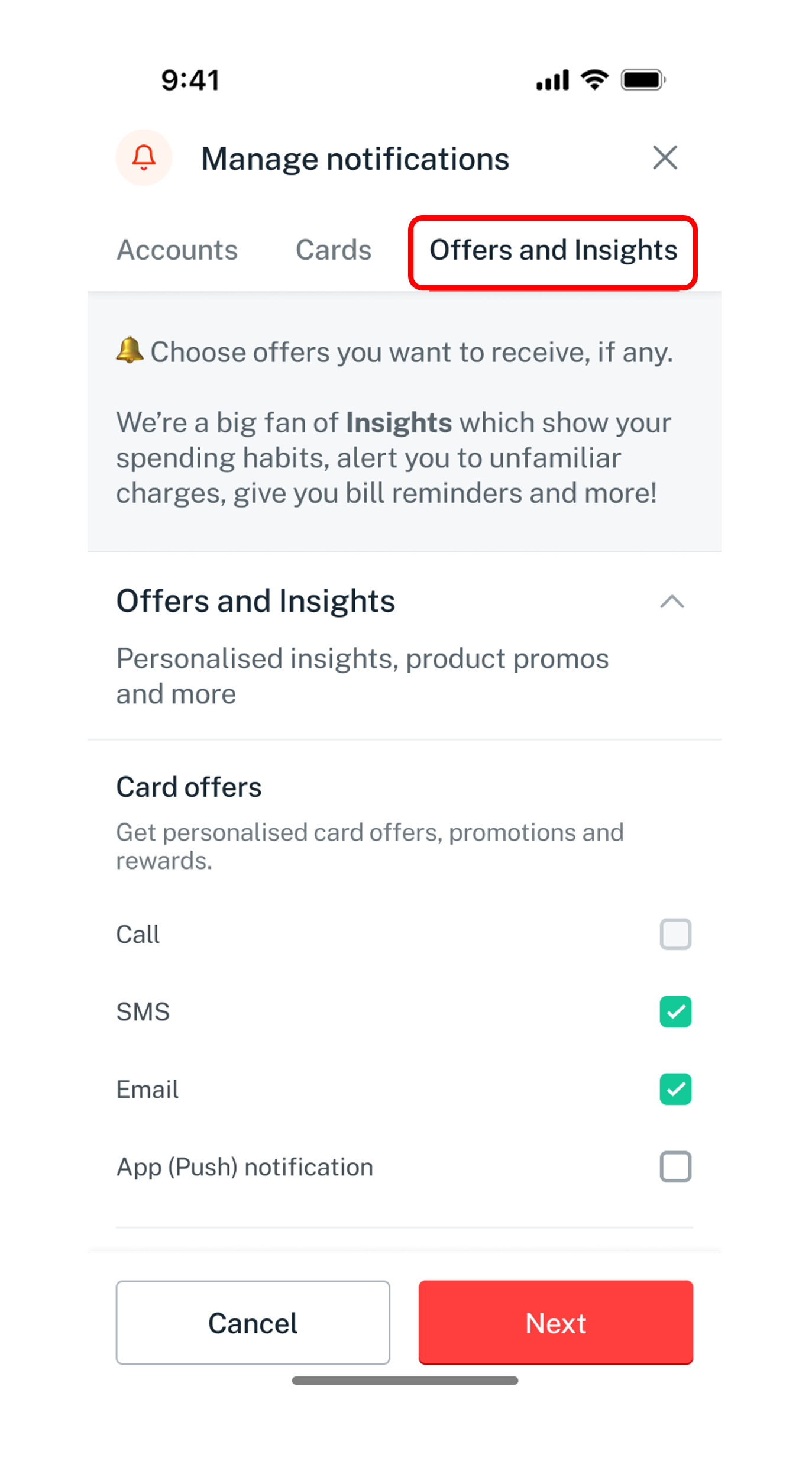 You can now customise the types of content and the channel to receive offers and insights notifications. To opt in for personalised content, simply follow the instructions above to manage your preferences.