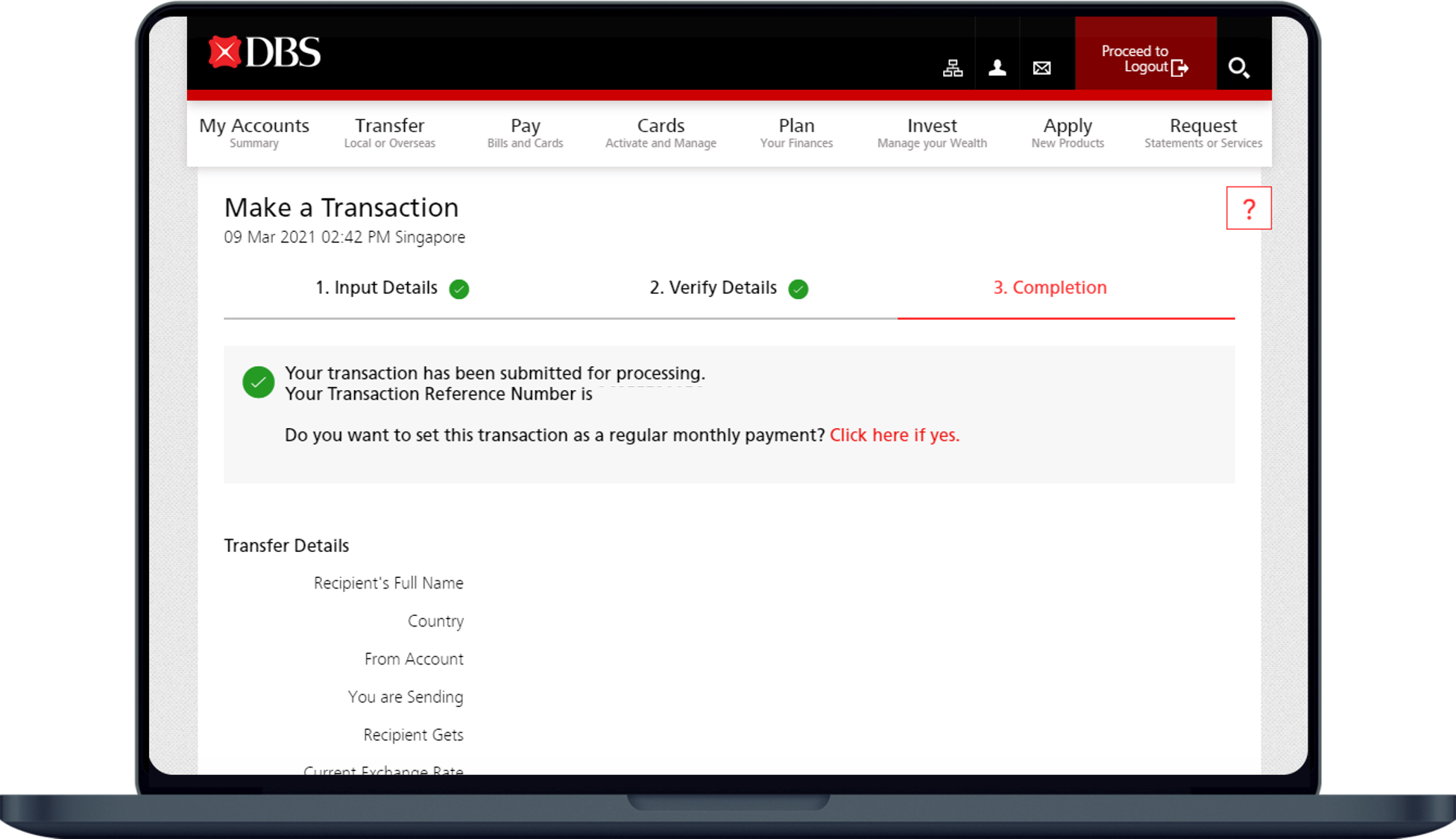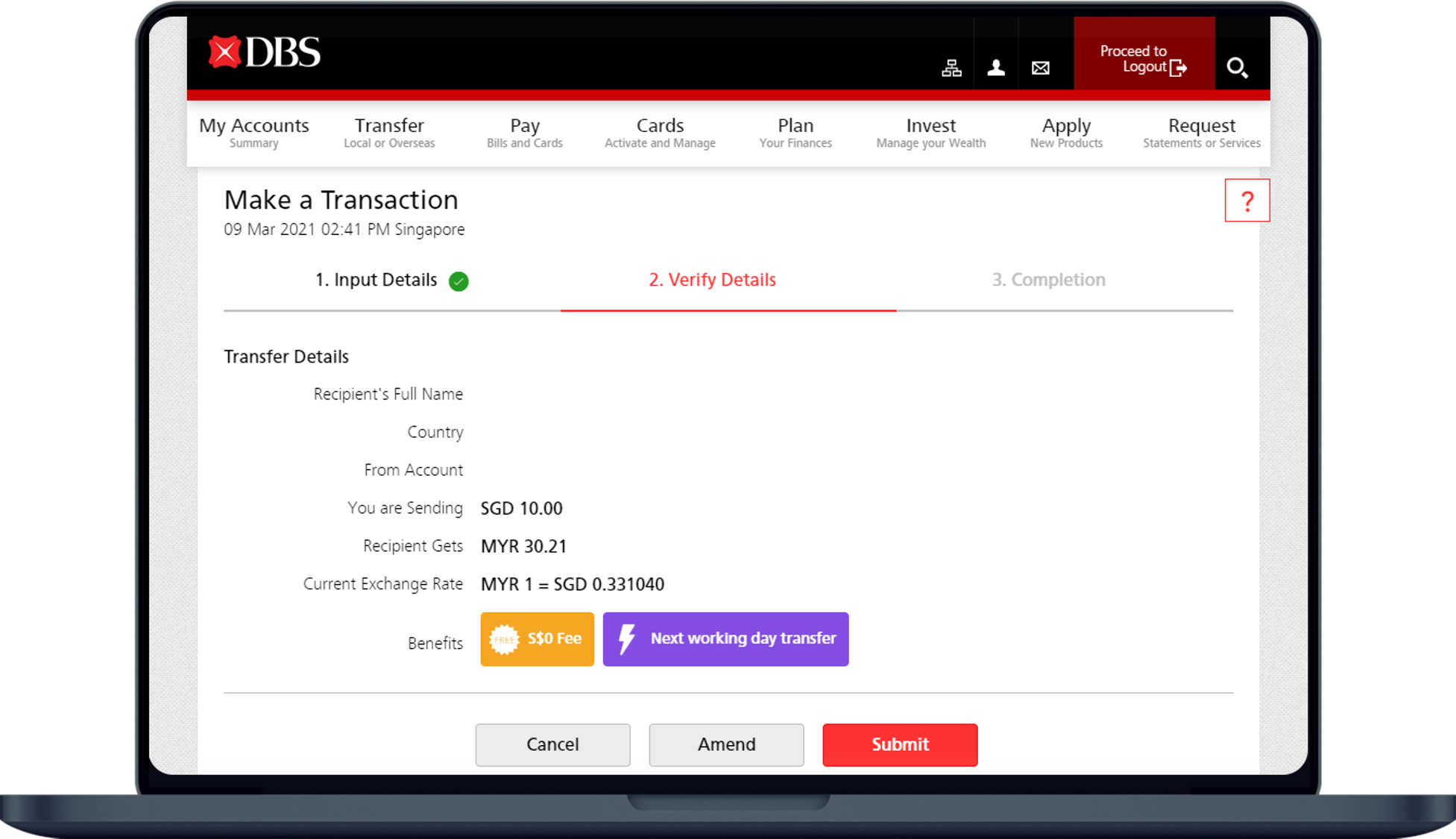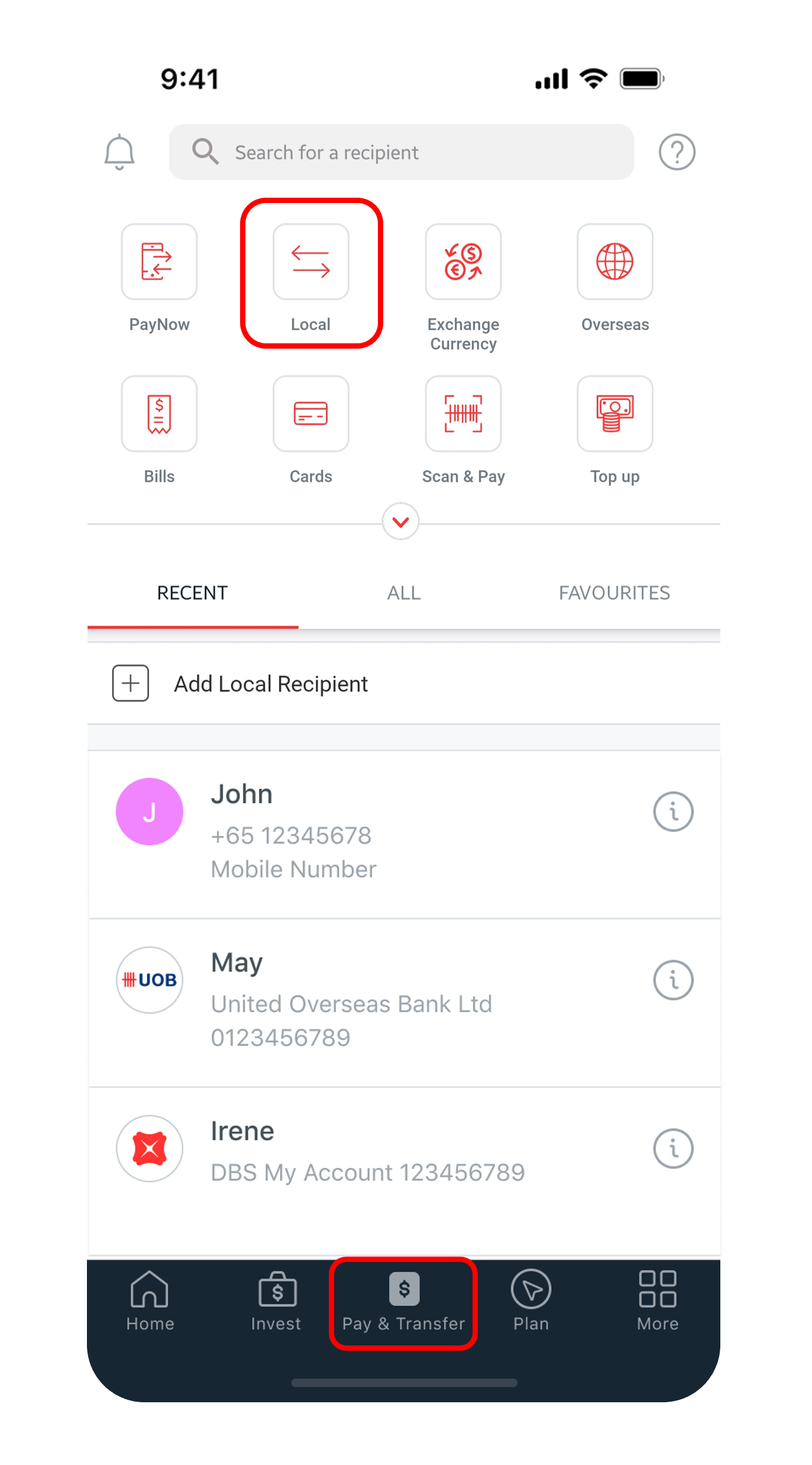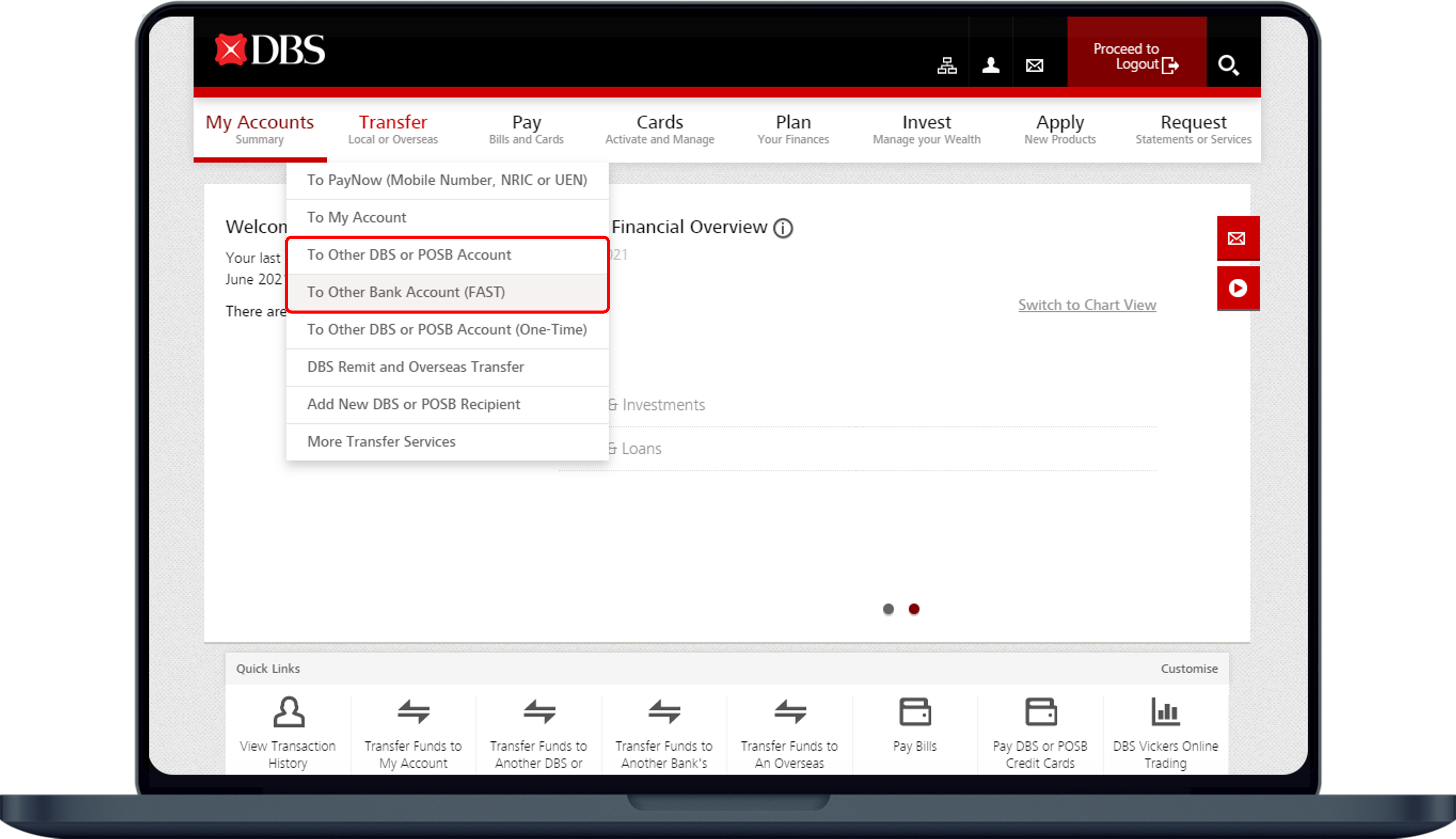 Learn how to send SGD or foreign currency to another DBS/POSB account or a different bank in Singapore. You can also schedule transfers to be sent out on a later date using digibank.