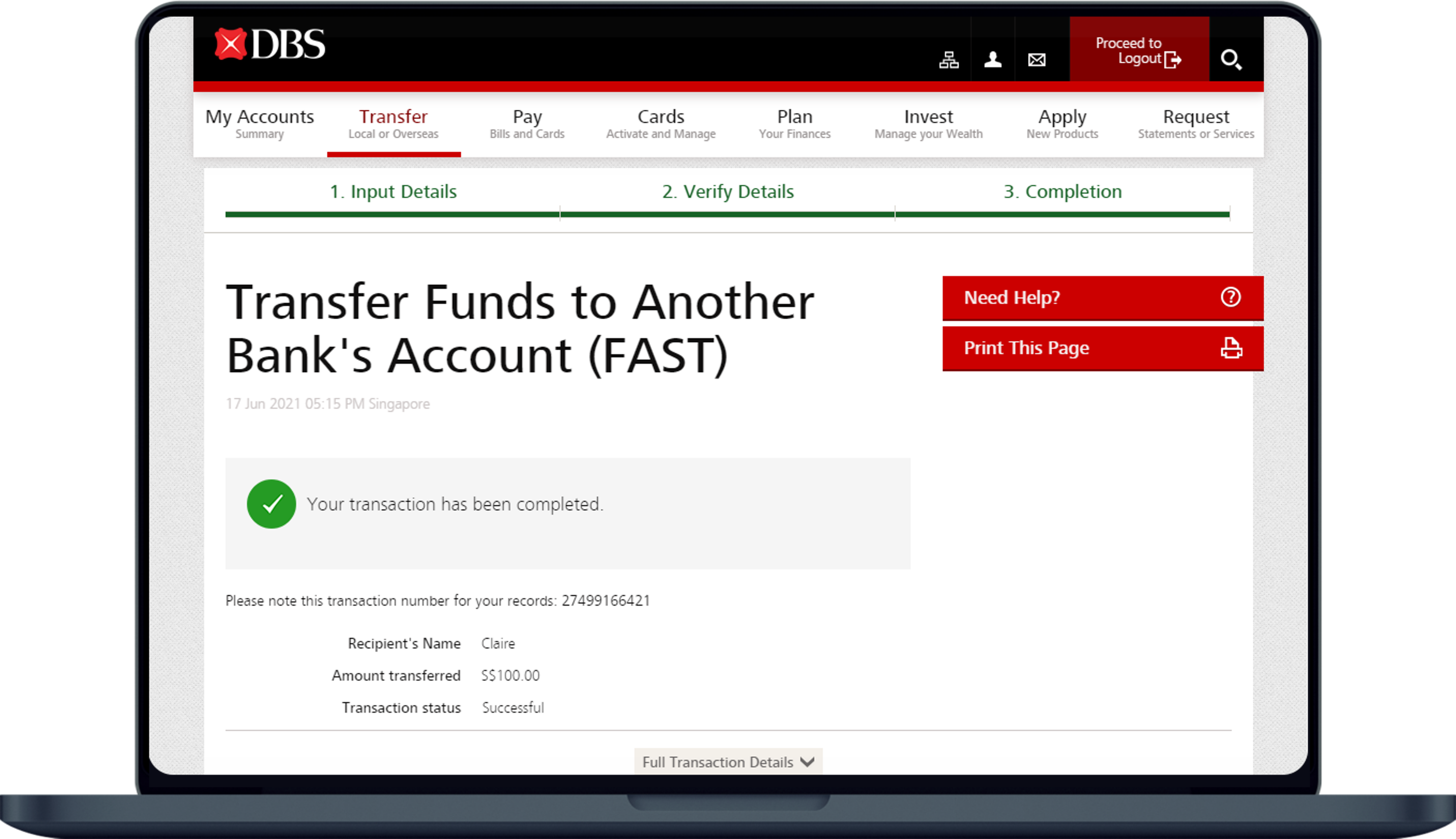 FAST lets you send Singapore dollars almost instantly to other banks and financial institutions.