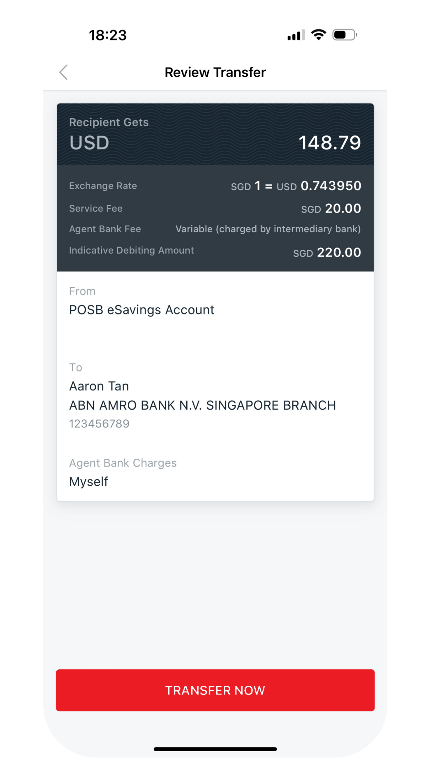 - Verify your transfer details and tap Transfer now to make the transfer.