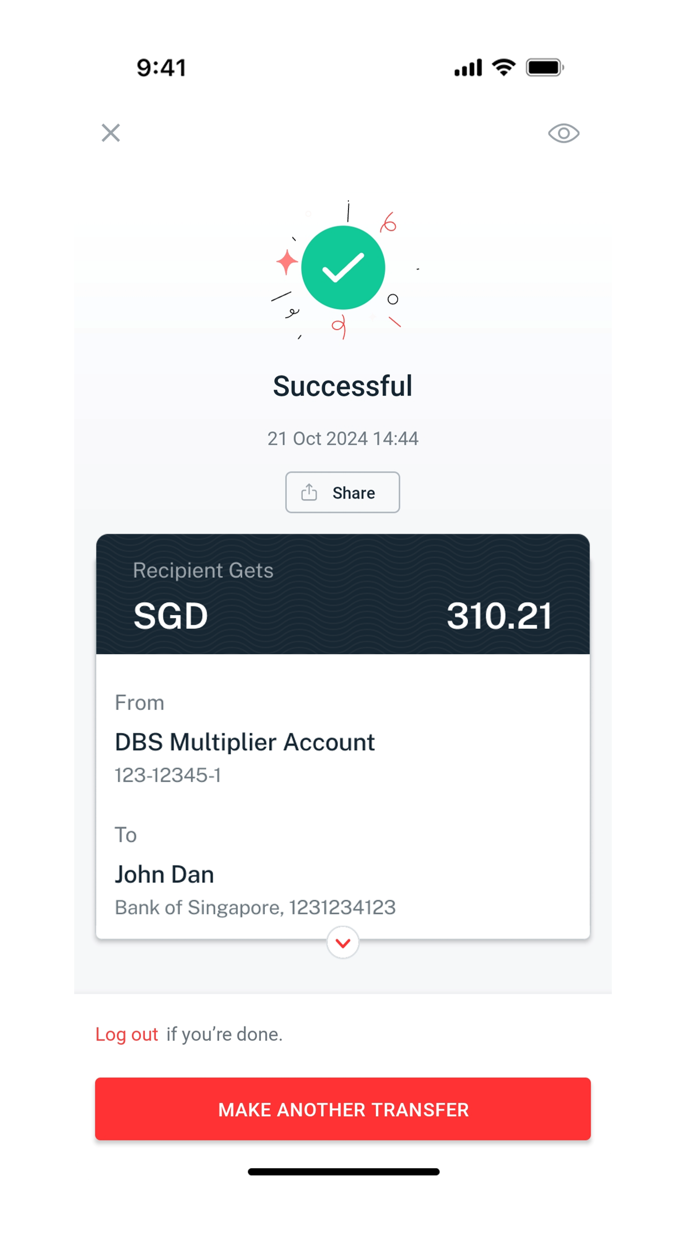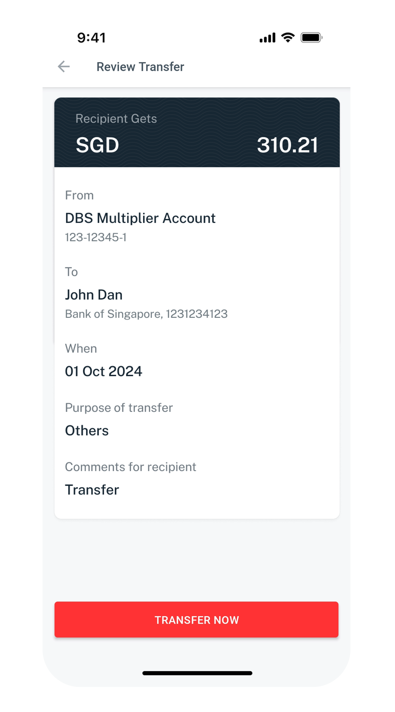 You can transfer funds in foreign currencies to other banks in Singapore, using the Overseas transfer feature on digibank. Simply follow the steps below.