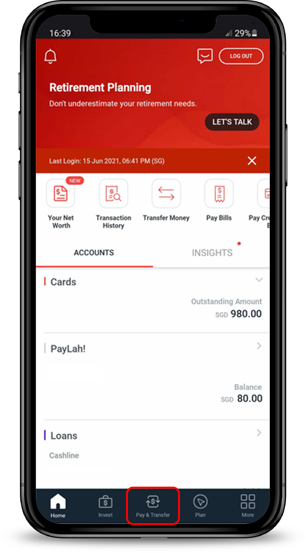 - Log in to digibank mobile with your Touch / Face ID or digibank User ID & PIN.