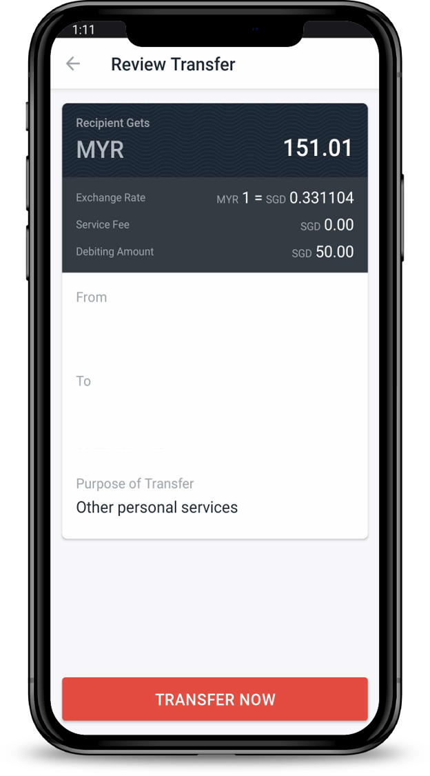 Transfer Time: Almost InstantPayNow is an electronic fund transfer service that allows you to transfer SGD funds instantly to a payee, using the payee's designated mobile number or NRIC/FIN number instead of his/her bank account number. Learn more.
