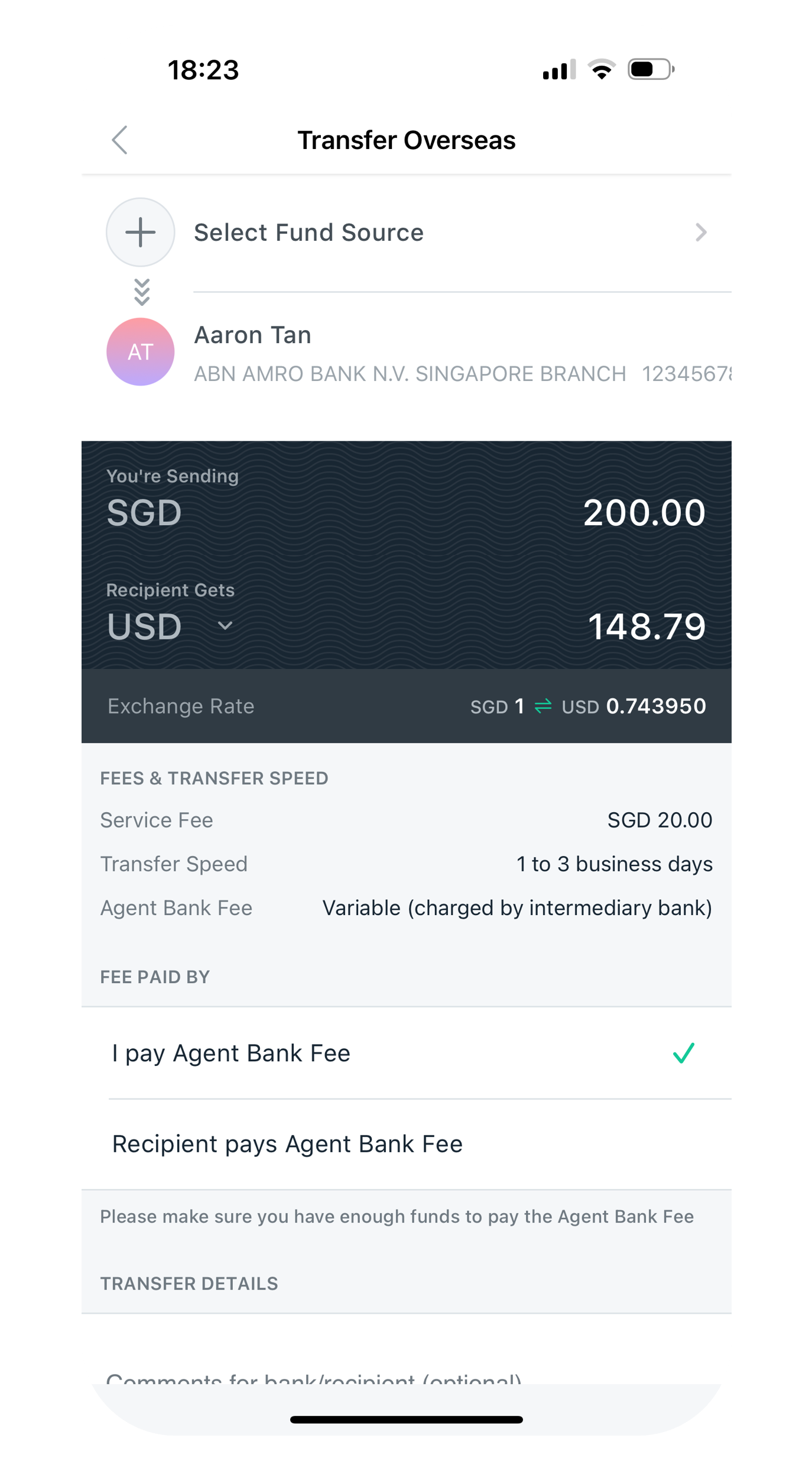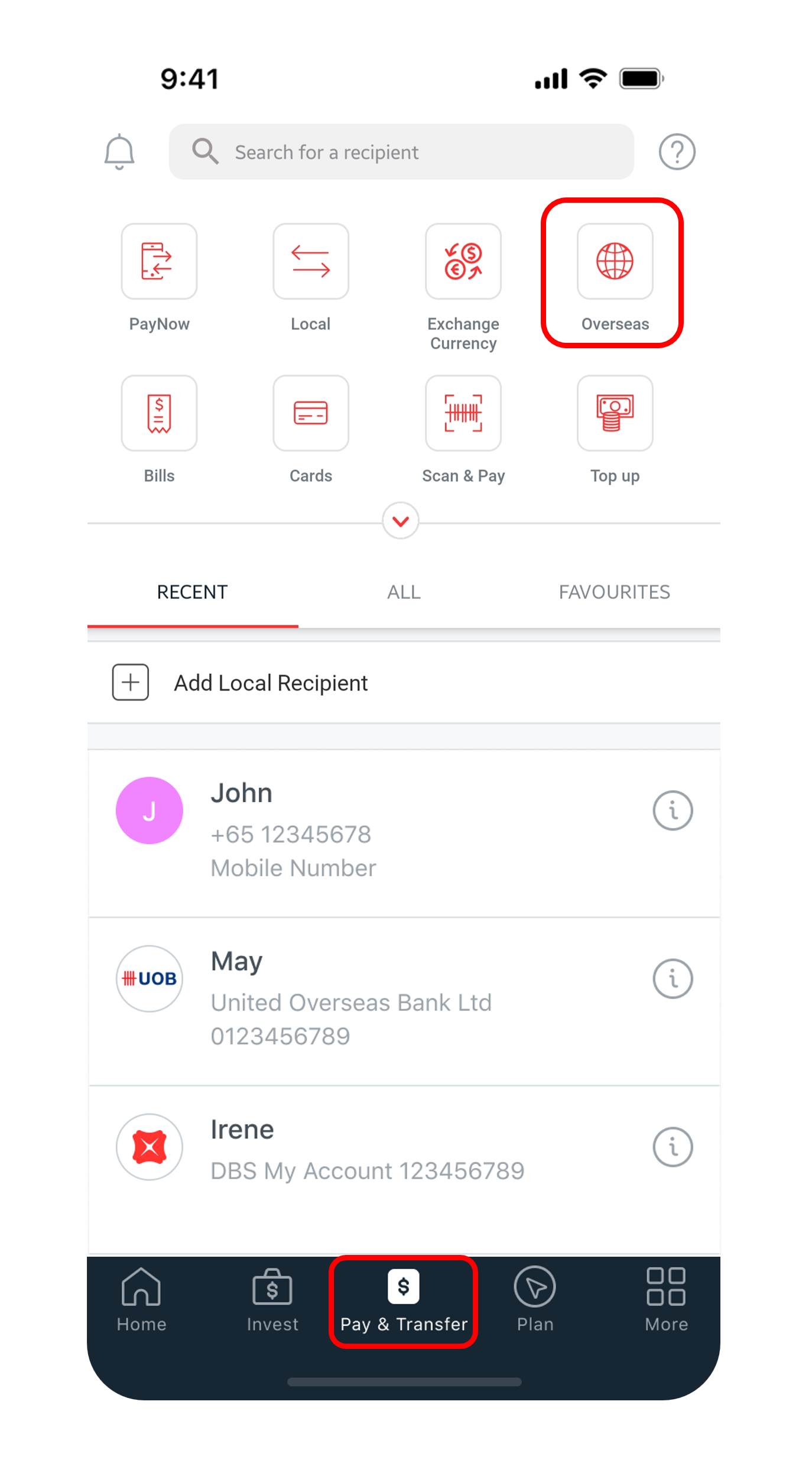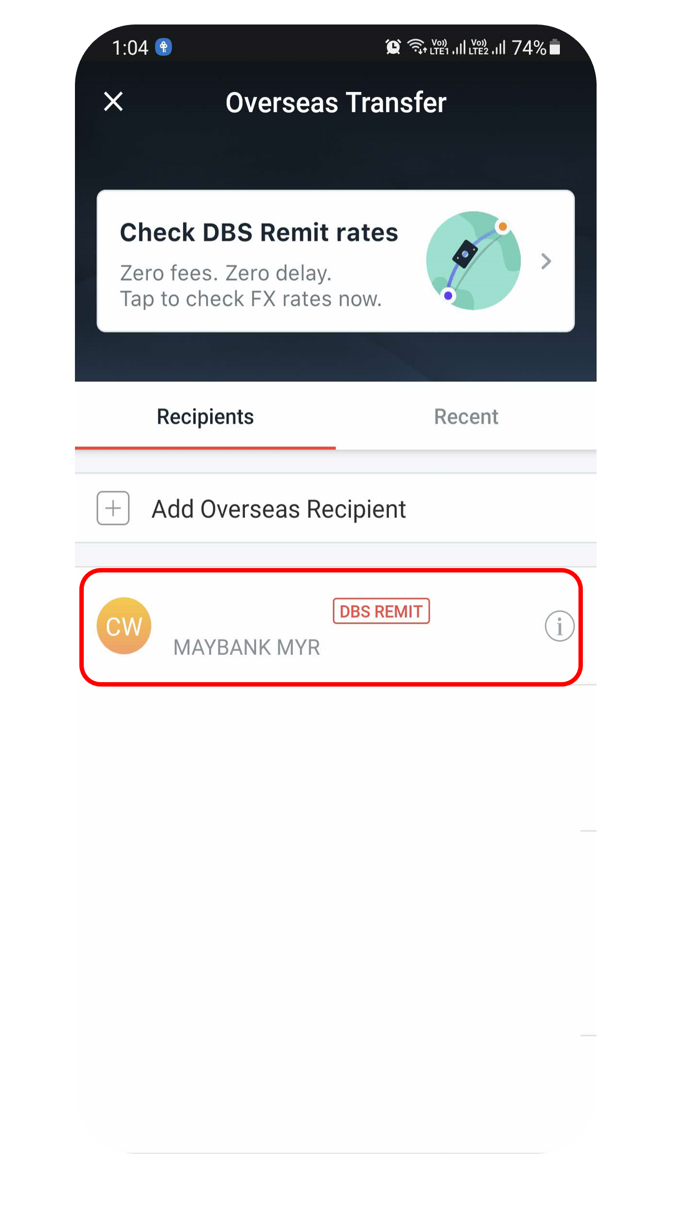 - Add a new recipient using the full name that is used in the bank account. Please ensure that there are no extra/missing letters or nicknames in the update as any submission of inaccurate information may lead to a delay or rejection of your overseas transfer.