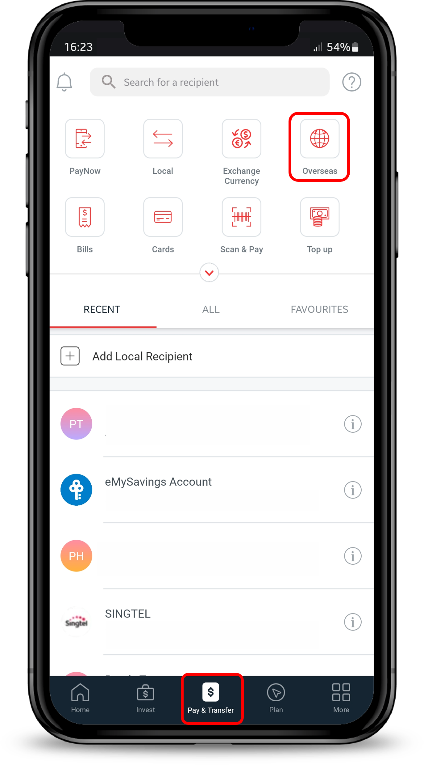 • Under Transfer, select DBS Remit and Overseas Transfer.