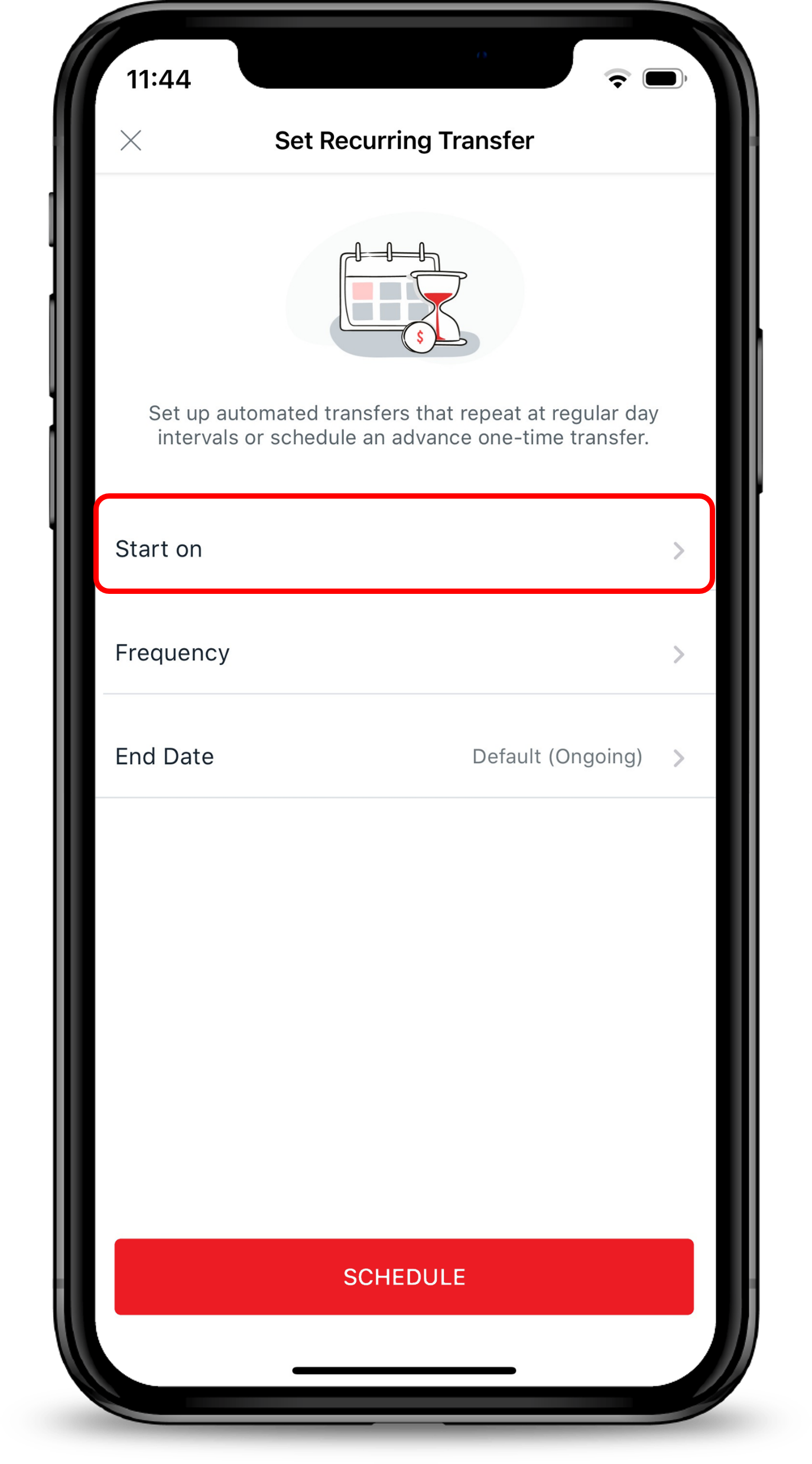 Tap on Schedule Transfer, and select Schedule a new transfer.