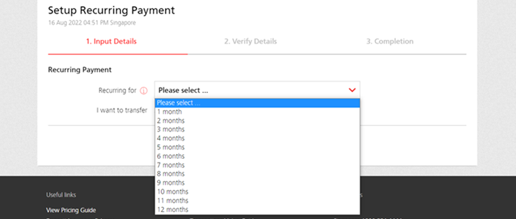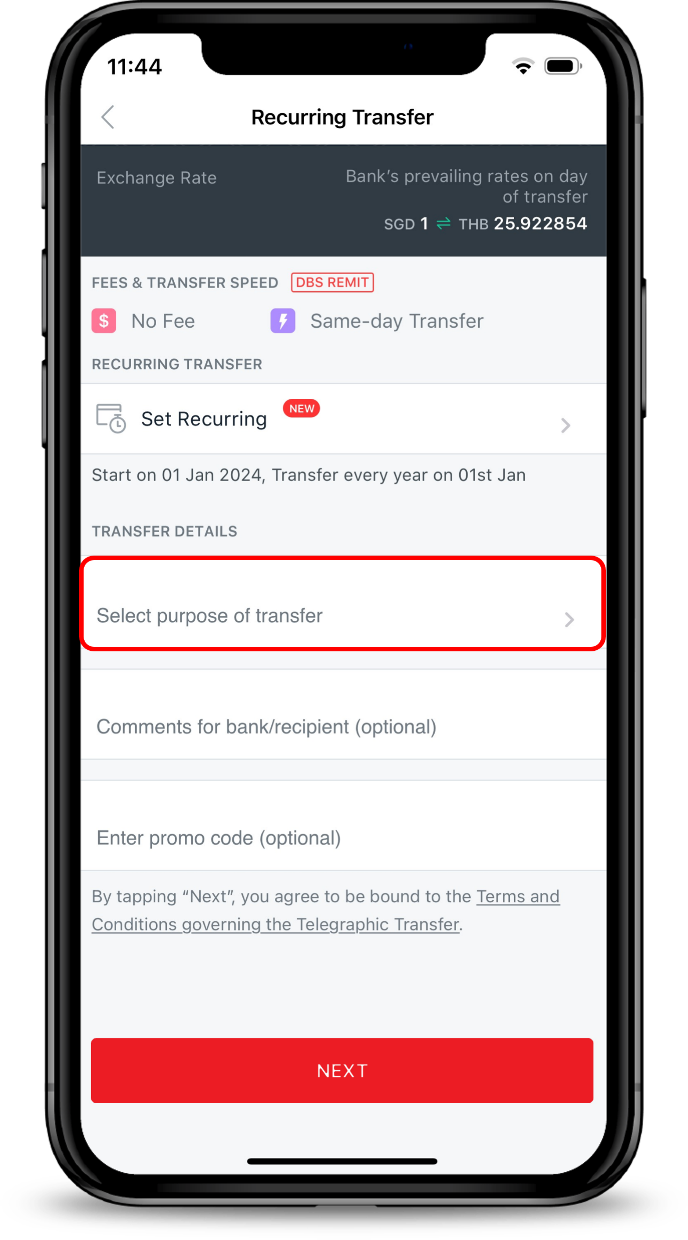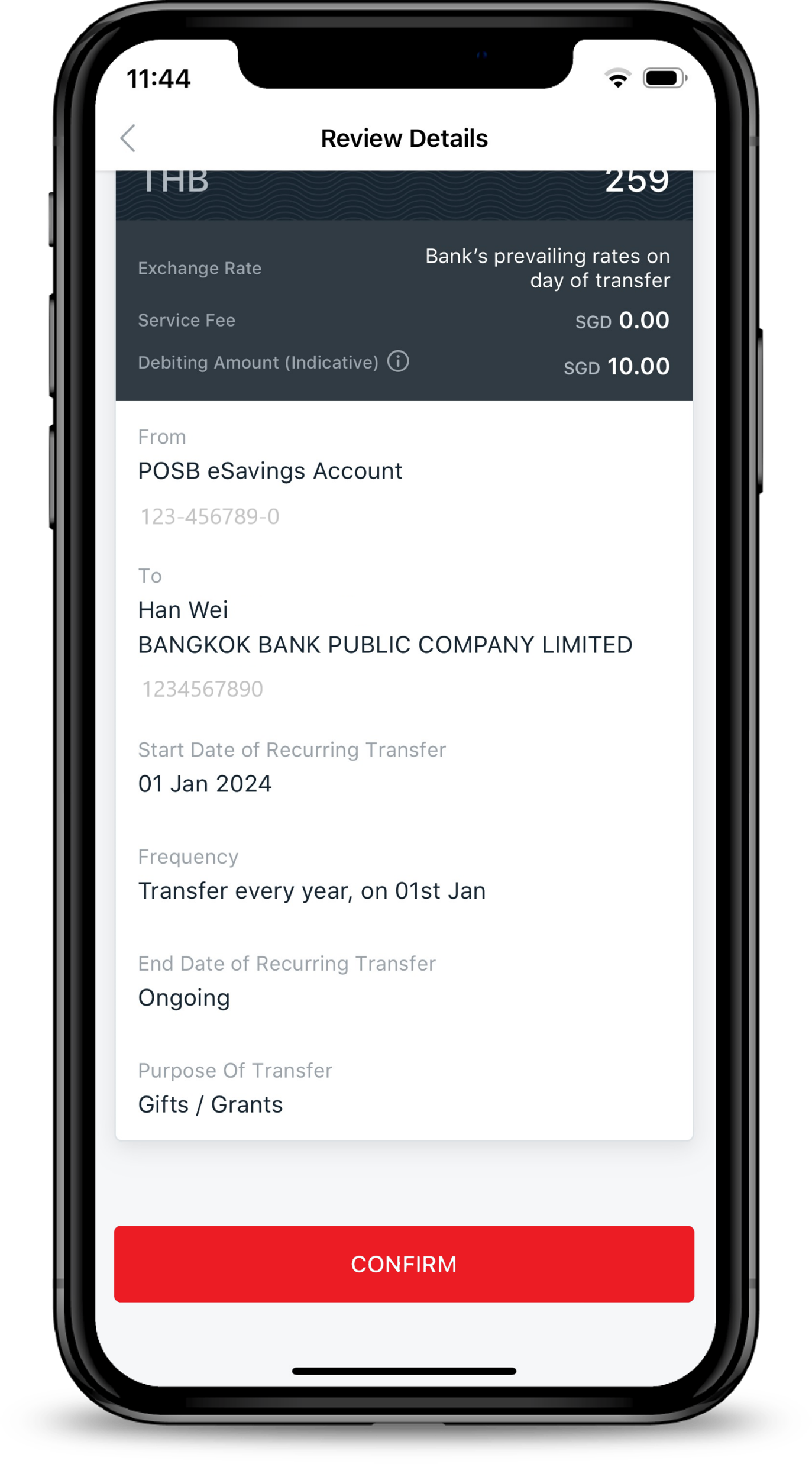 • Recurring overseas funds transfers that fall over the weekend or public holidays of Singapore will only be sent out by DBS on the next business day.