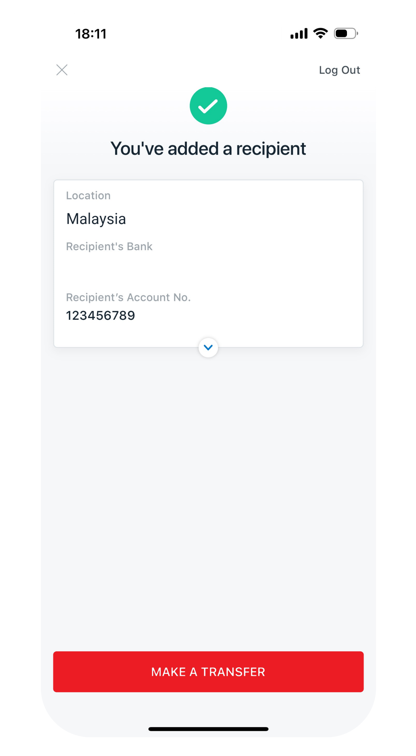You have successfully added your overseas fund transfer recipient.