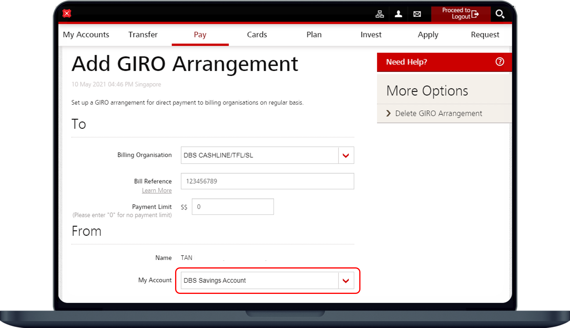 Find out how you can set up a GIRO arrangement easily using digibank online.