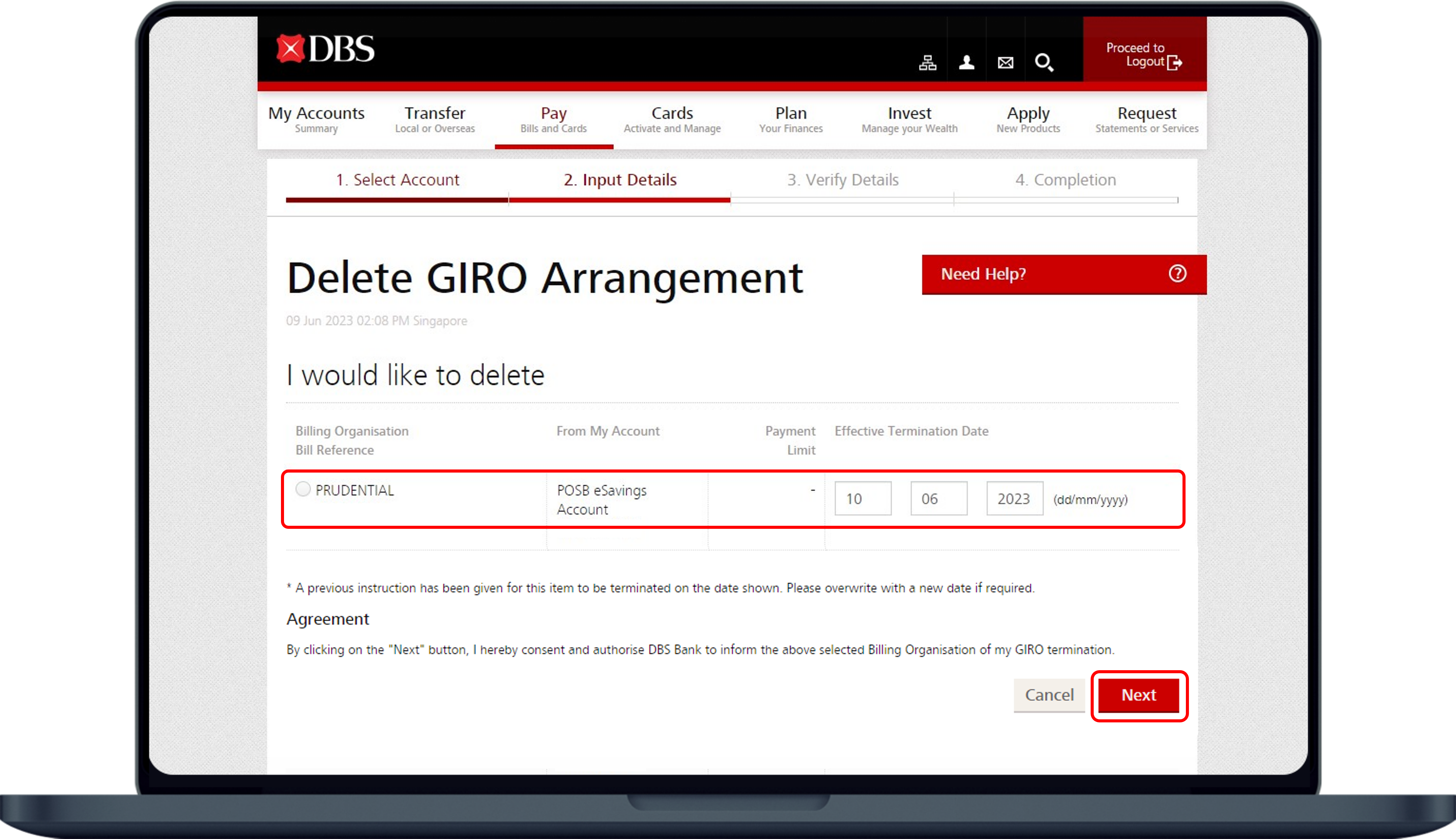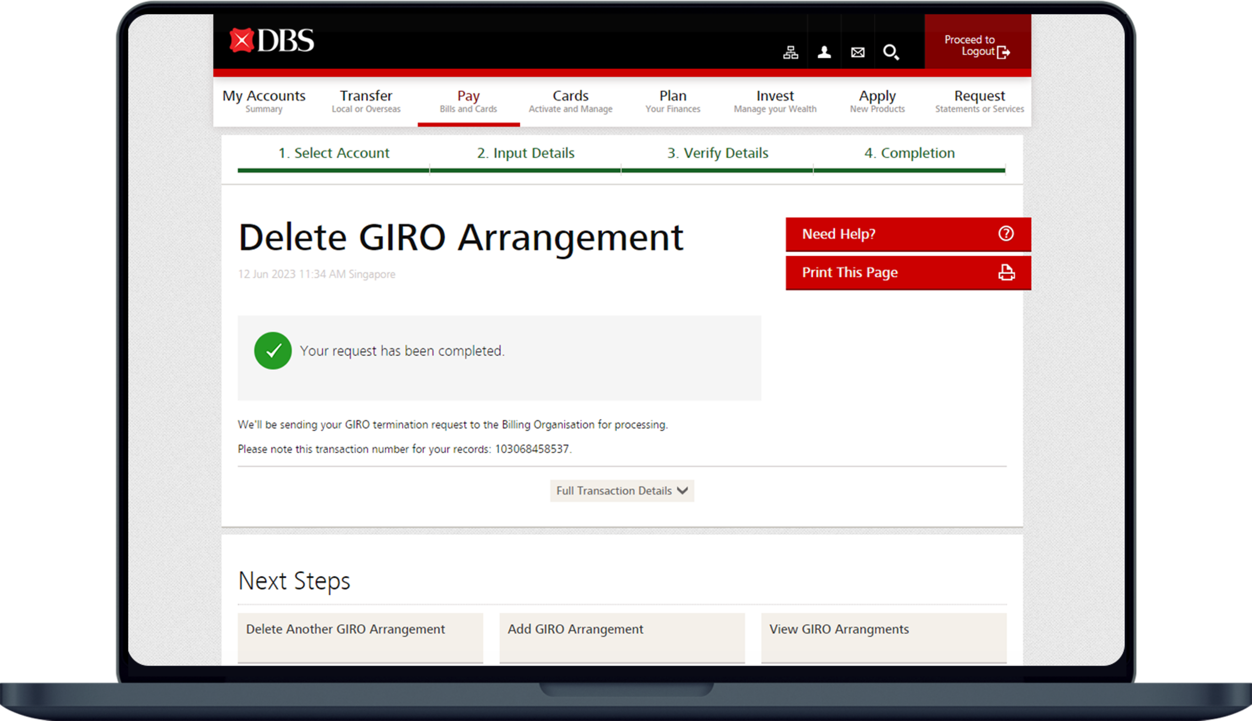 Learn how you can terminate a GIRO arrangement easily using digibank.