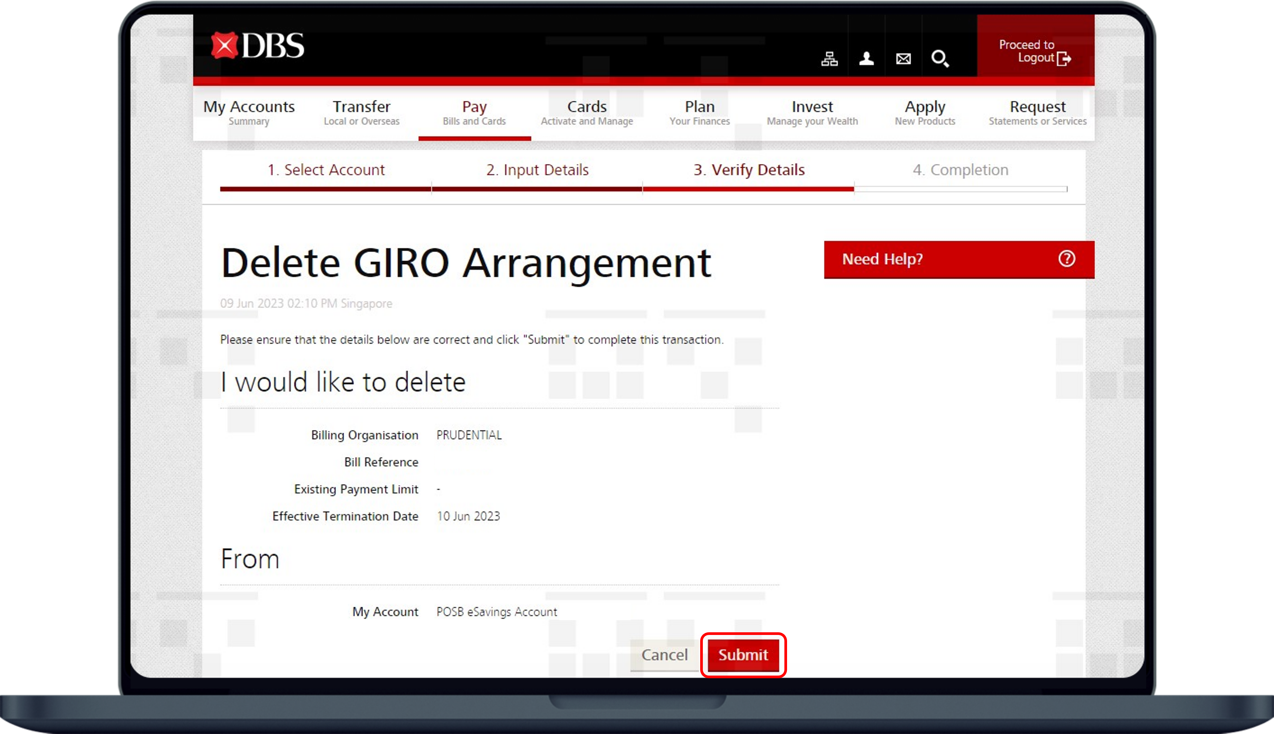 - If you are residing overseas, without access to digibank online, complete and mail in our Amendment/Termination of GIRO Form.
