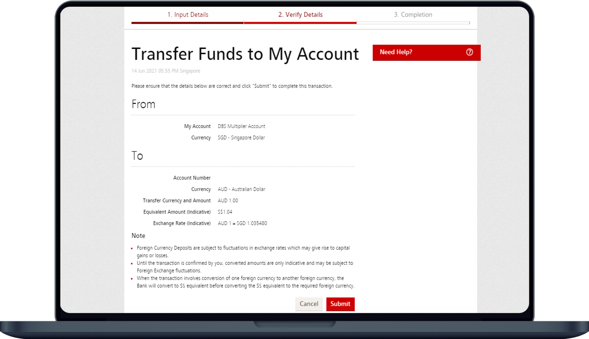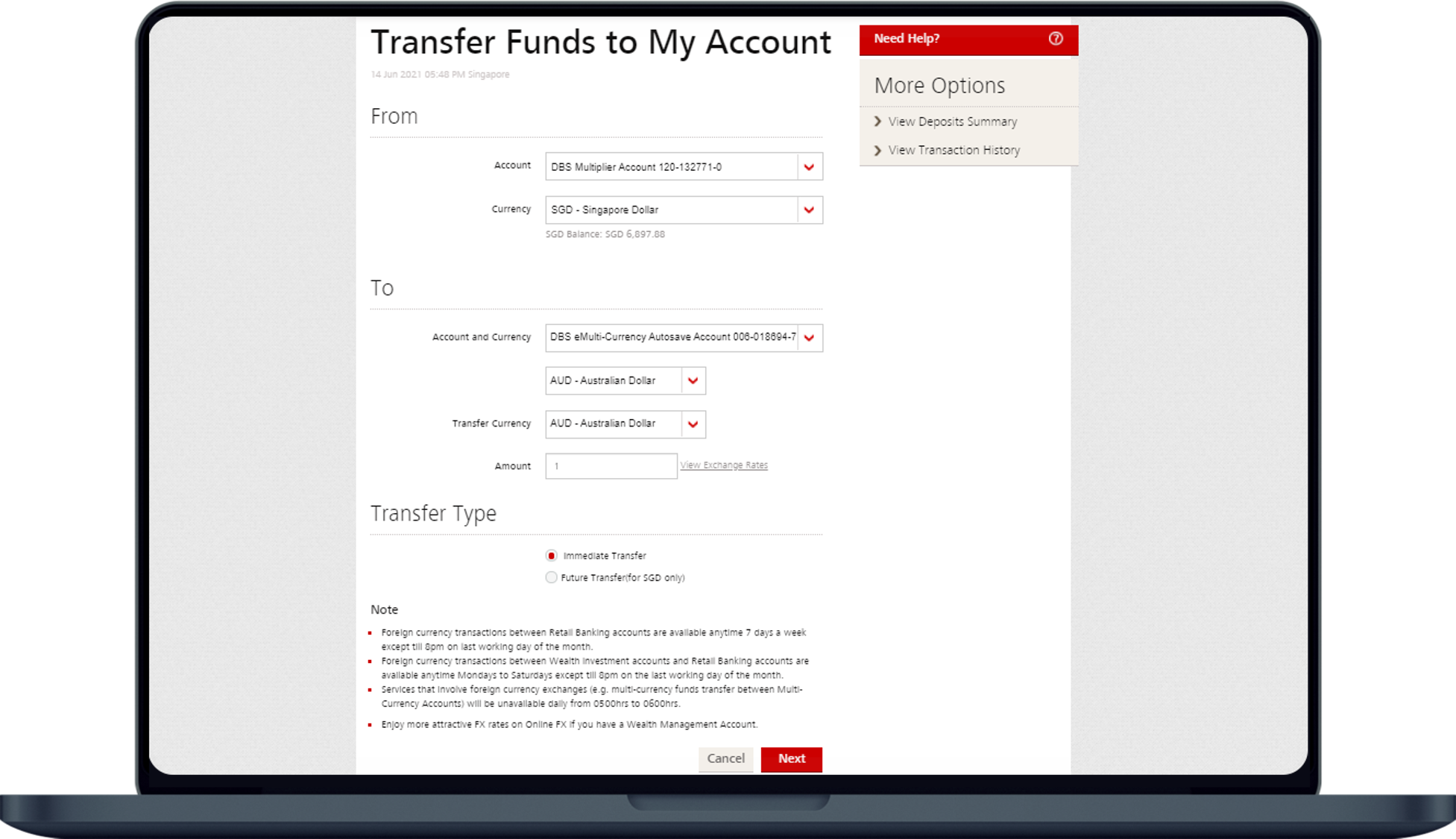 (You may View Exchange Rates to view the indicative foreign exchange rates before performing the transfer.)
