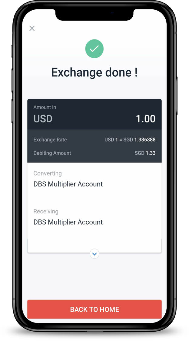 There are various channels which you may exchange Foreign Currencies using DBS Multi-Currency Account with us. The most convenient method would be via digibank mobile.