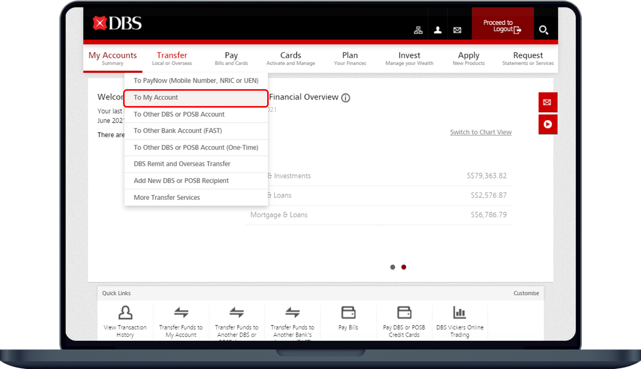 • Under Home, select your DBS Multi-Currency Account.