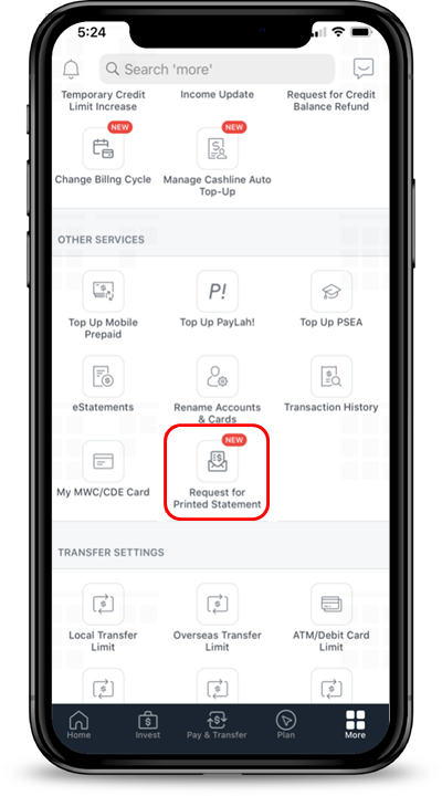 You can request for a printed copy of your account statement via digibank online. To access your statements anytime, anywhere, enrol for eStatements.