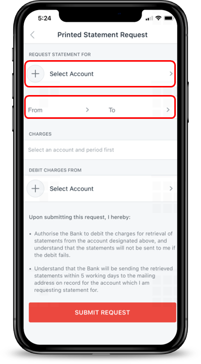 - There will be charges applicable for the retrieval of printed past documents/statements: