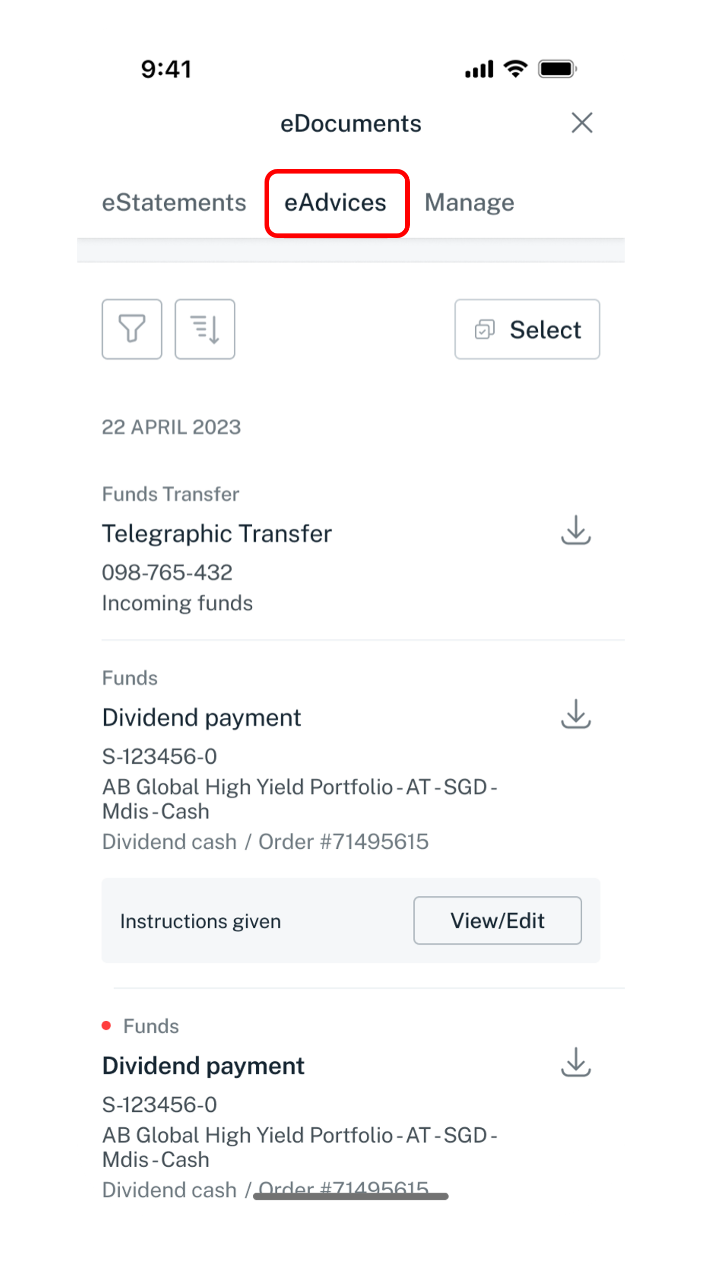 View your eStatements and eAdvices