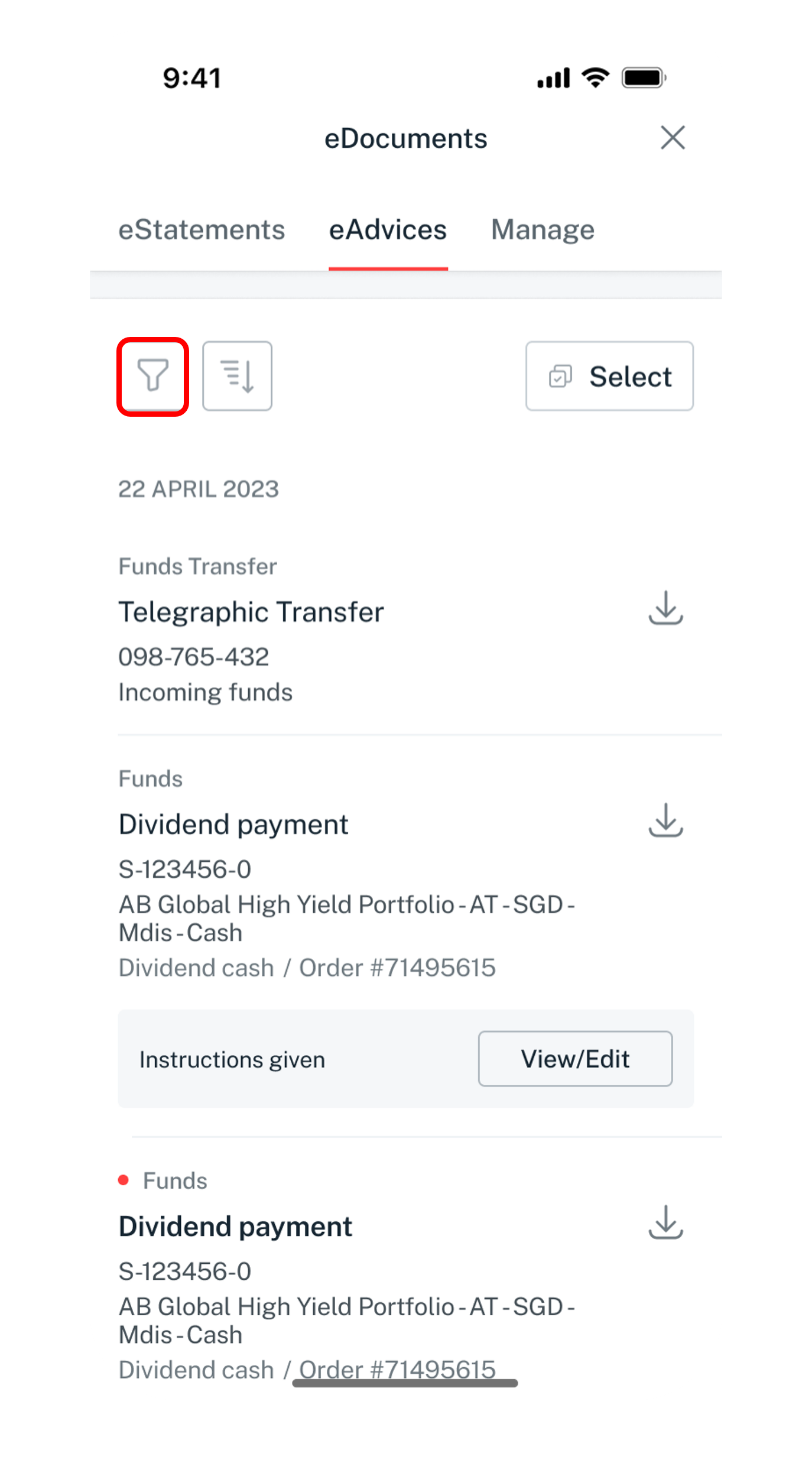 - Filter by your statement type and year to view your eStatements or eAdvices according to your preferences.