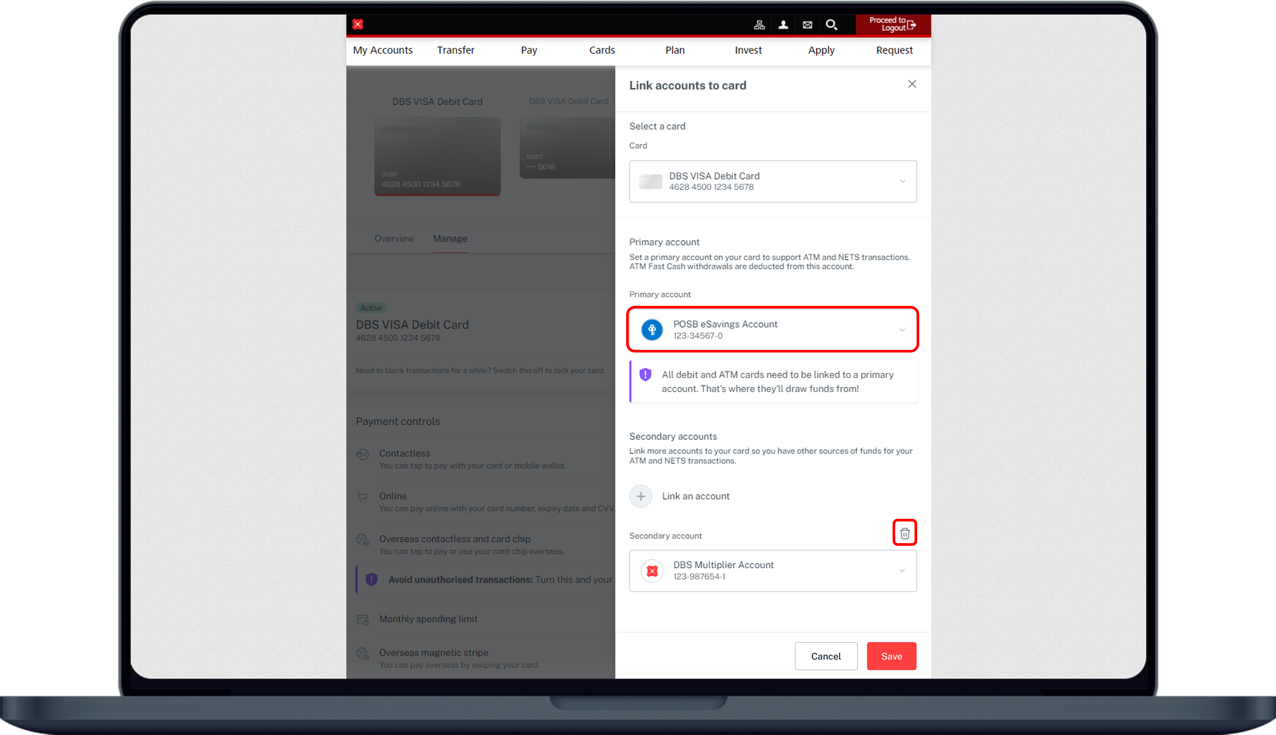 There are various channels which you may use to link your Savings or Current Account to your card with us. The most convenient method would be via digibank mobile.