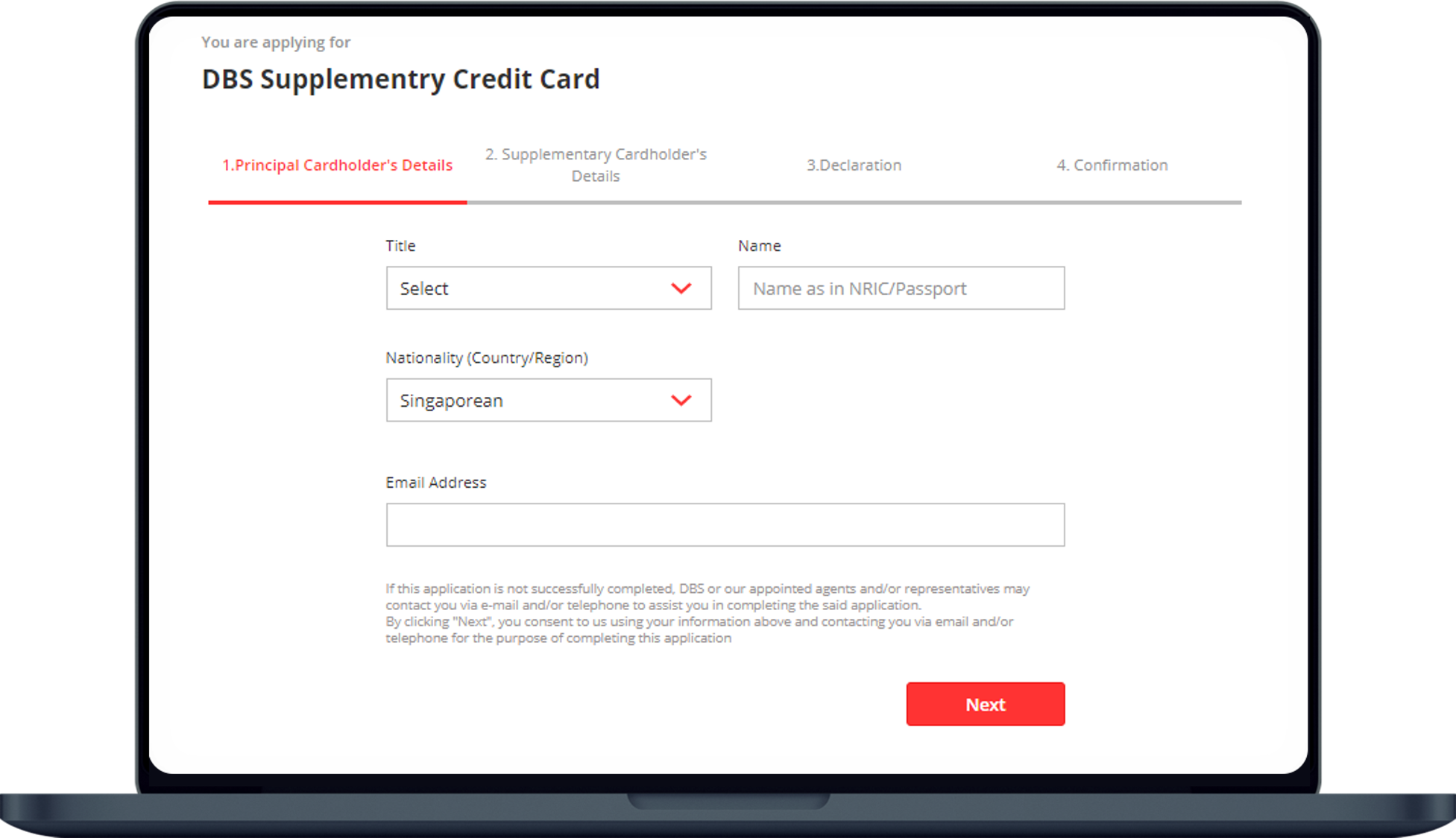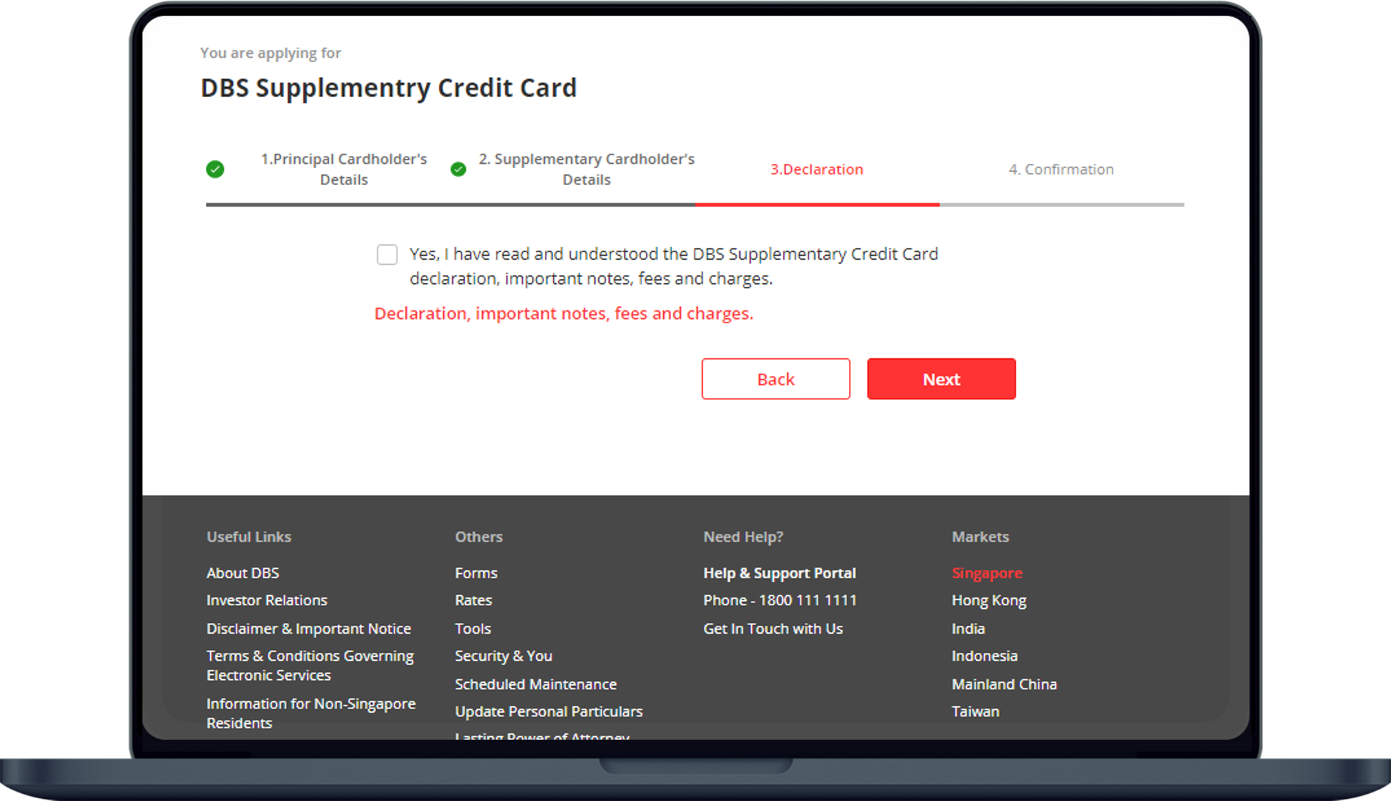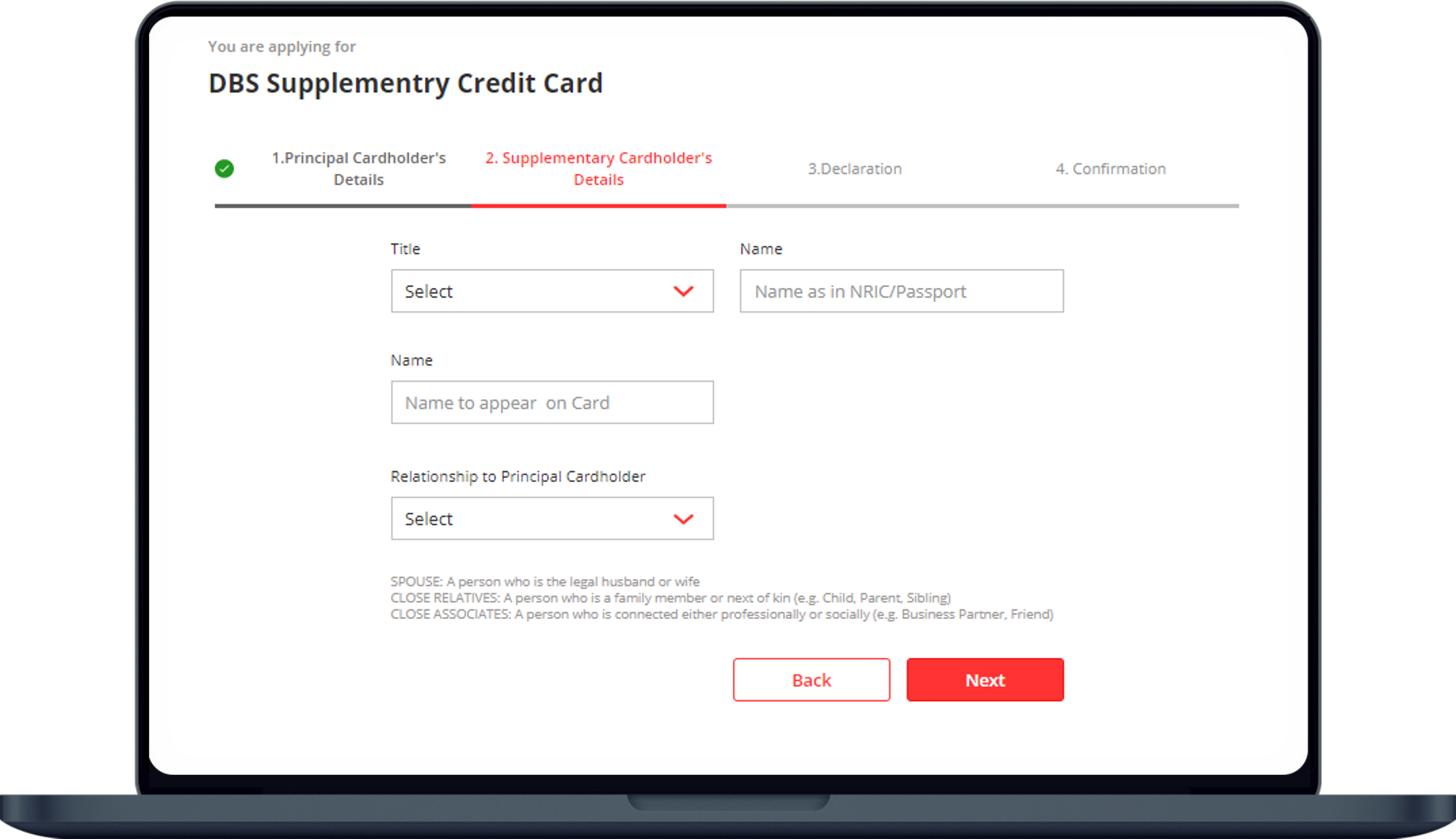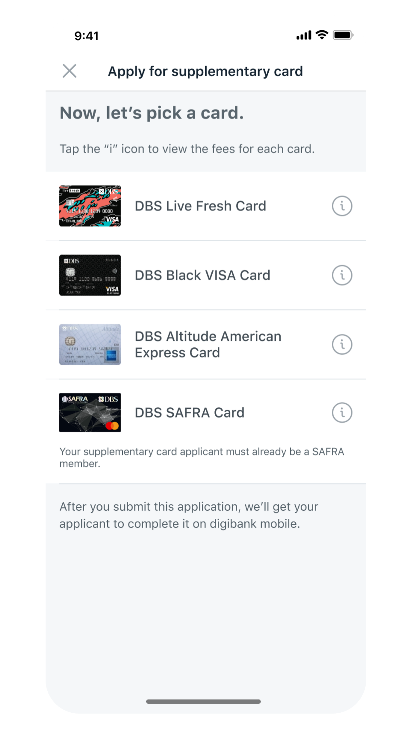 There are various channels which you may apply for a Supplementary Card with us. The most convenient method would be via digibank mobile.