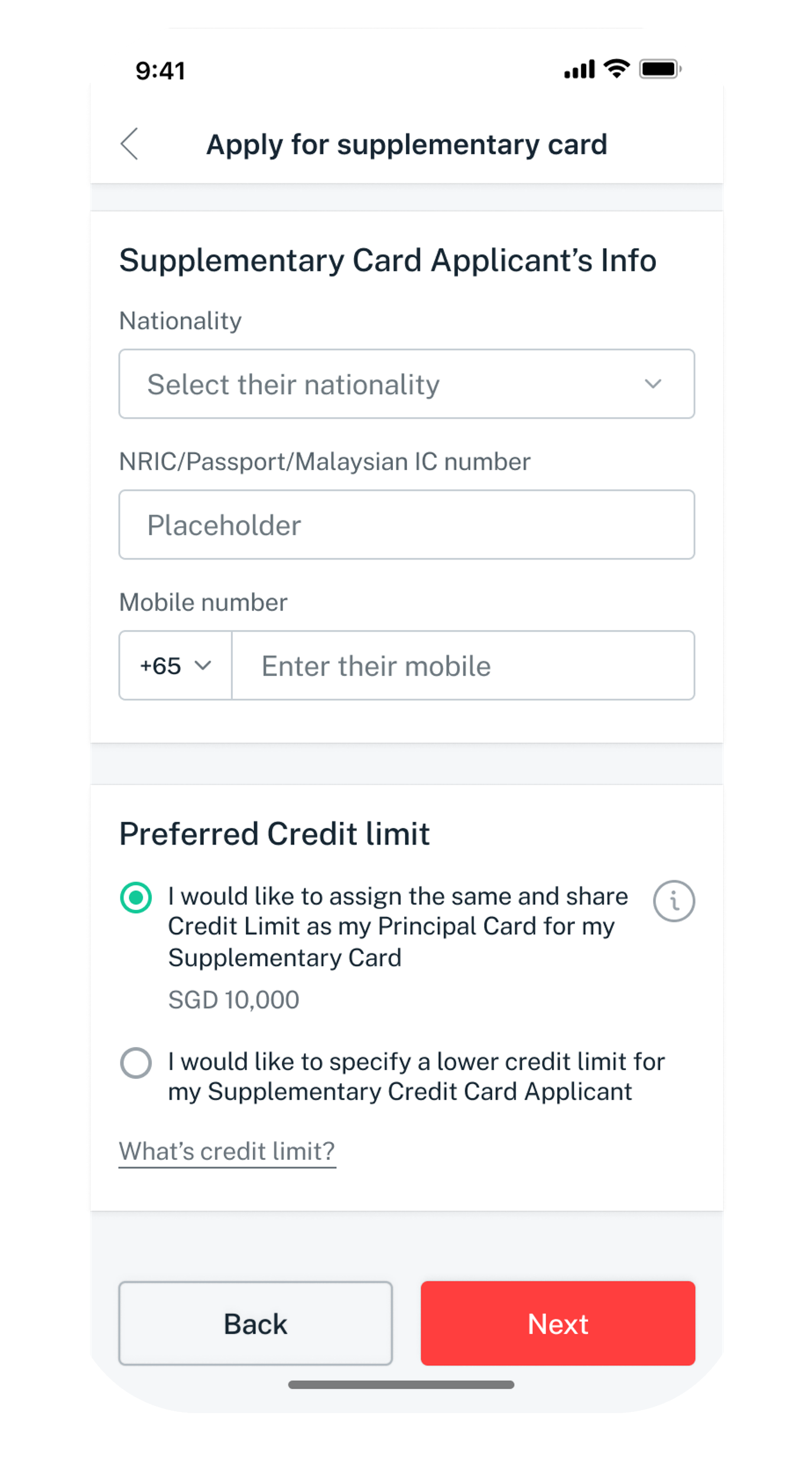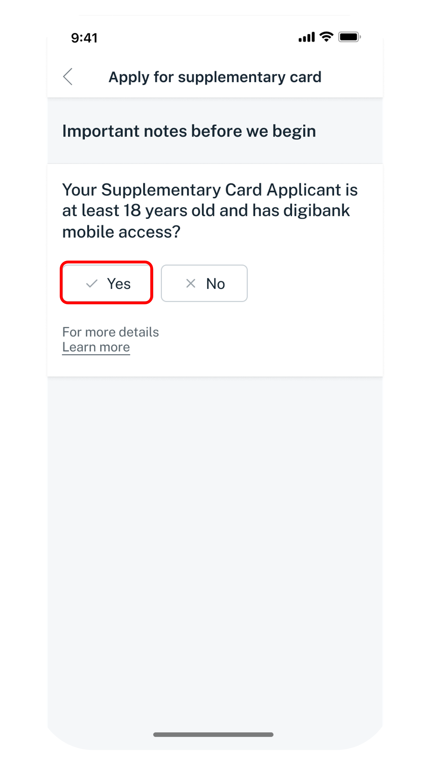 - Your Supplementary Card applicant must be at least 18 years old and have a digibank mobile.