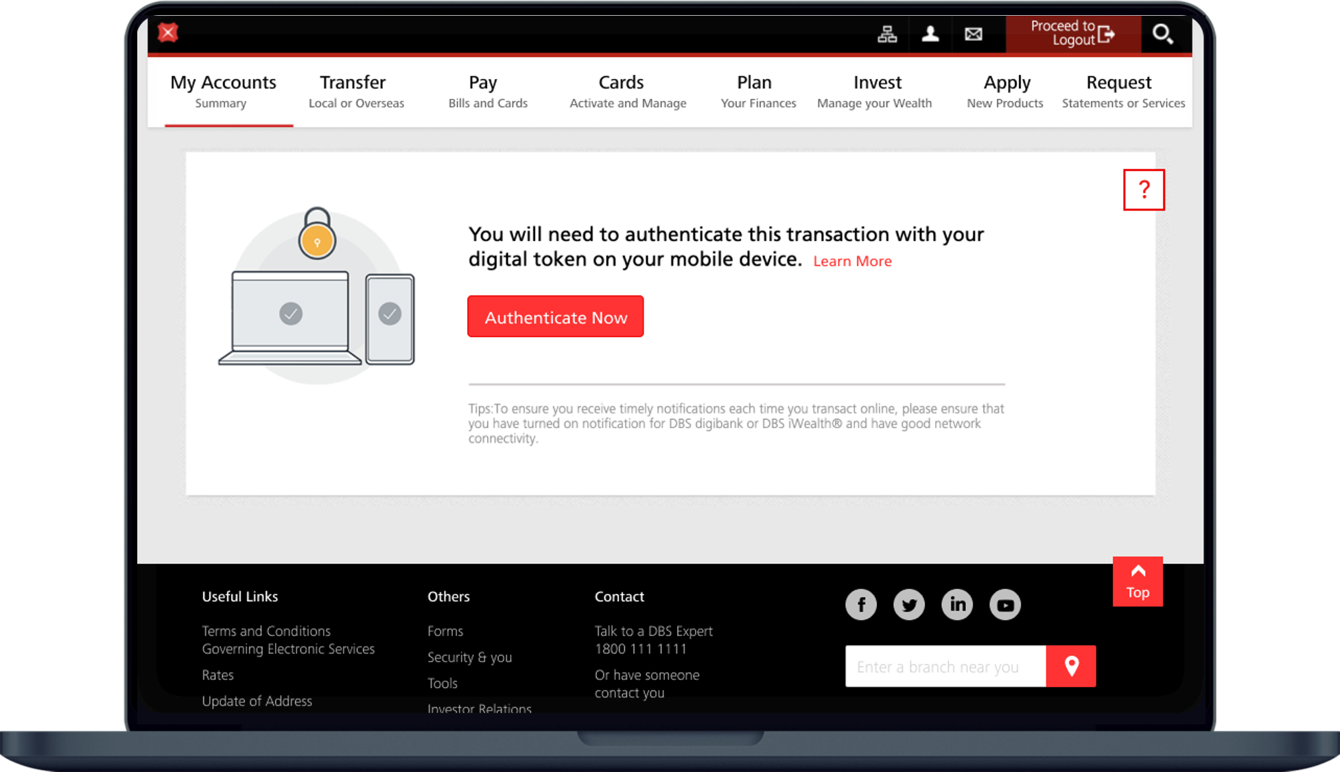 Log in to digibank mobile with your Touch / Face ID or digibank User ID & PIN.