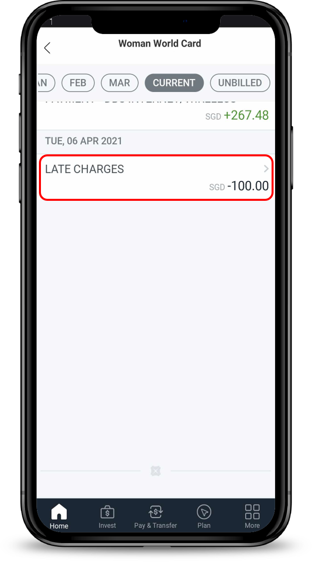 There are various channels which you may identify late fee with us. The most convenient method would be via digibank mobile.