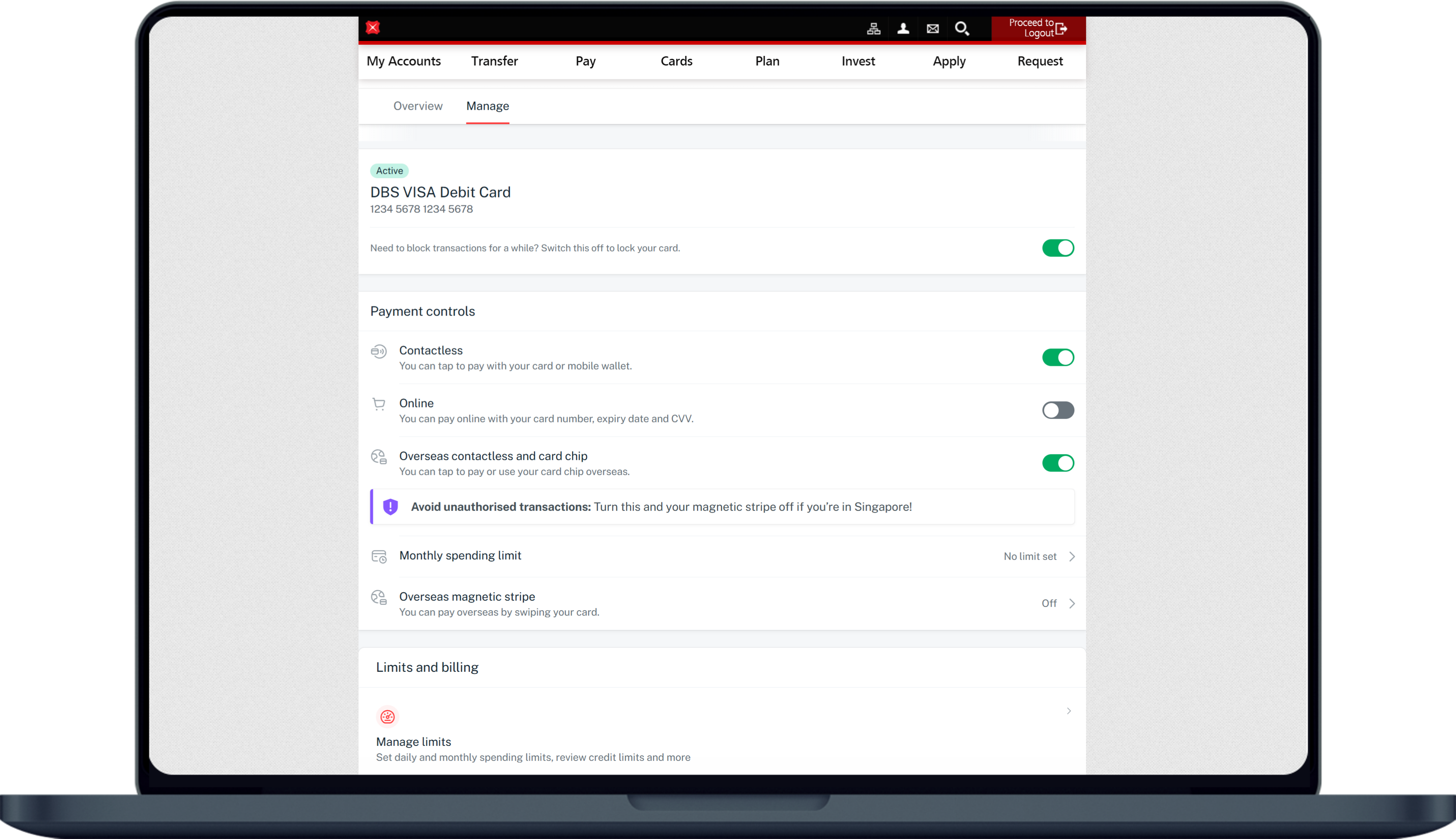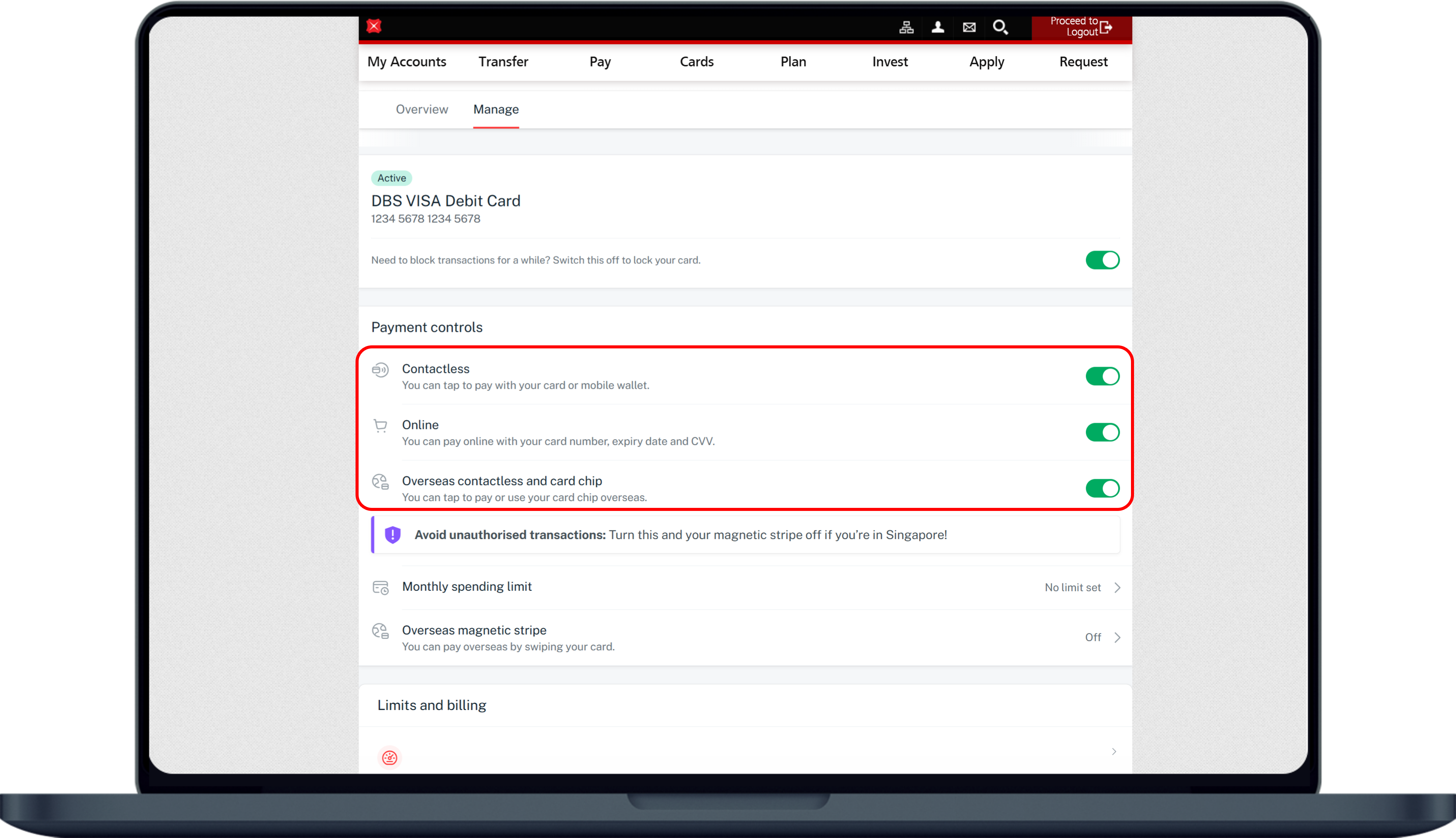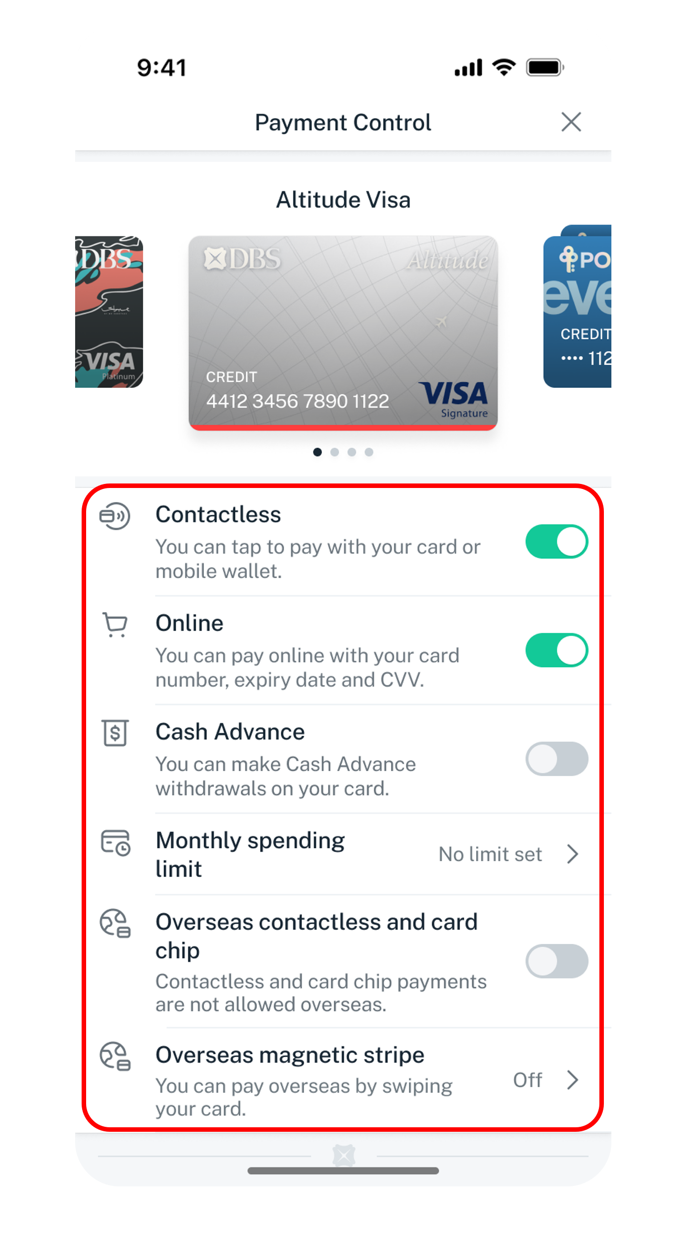 Examples include: SP Utilities recurring payments, AIA recurring insurance via In-app, Apple subscription. - Any new card replacement will not reset your customised card functions. If required, you may amend the setting once card is activated.