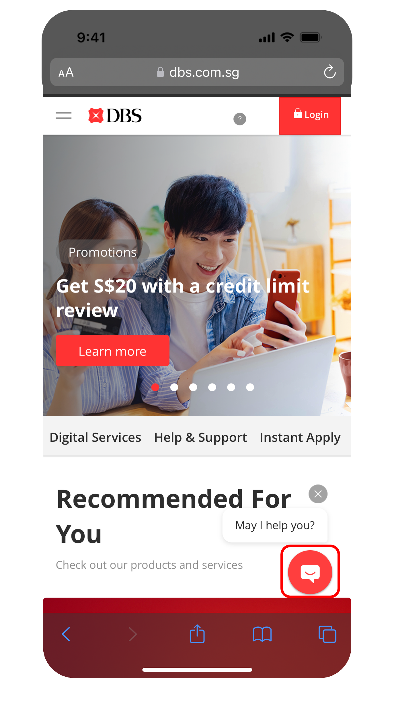 Log in to digibank mobile with your Touch / Face ID or digibank User ID & PIN.