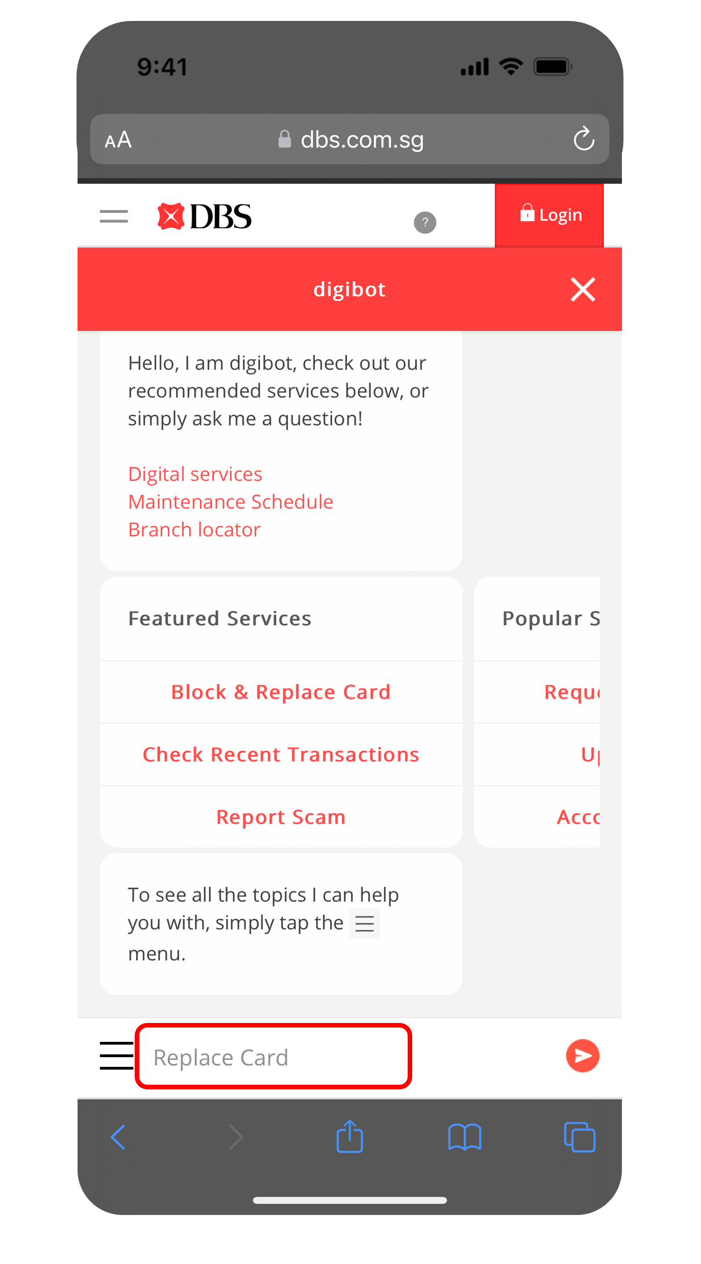 • If you did not receive a PIN mailer or have forgotten your PIN, you may activate your replacement card and reset your PIN instantly via digibank. Find out how you can Reset Card PIN.