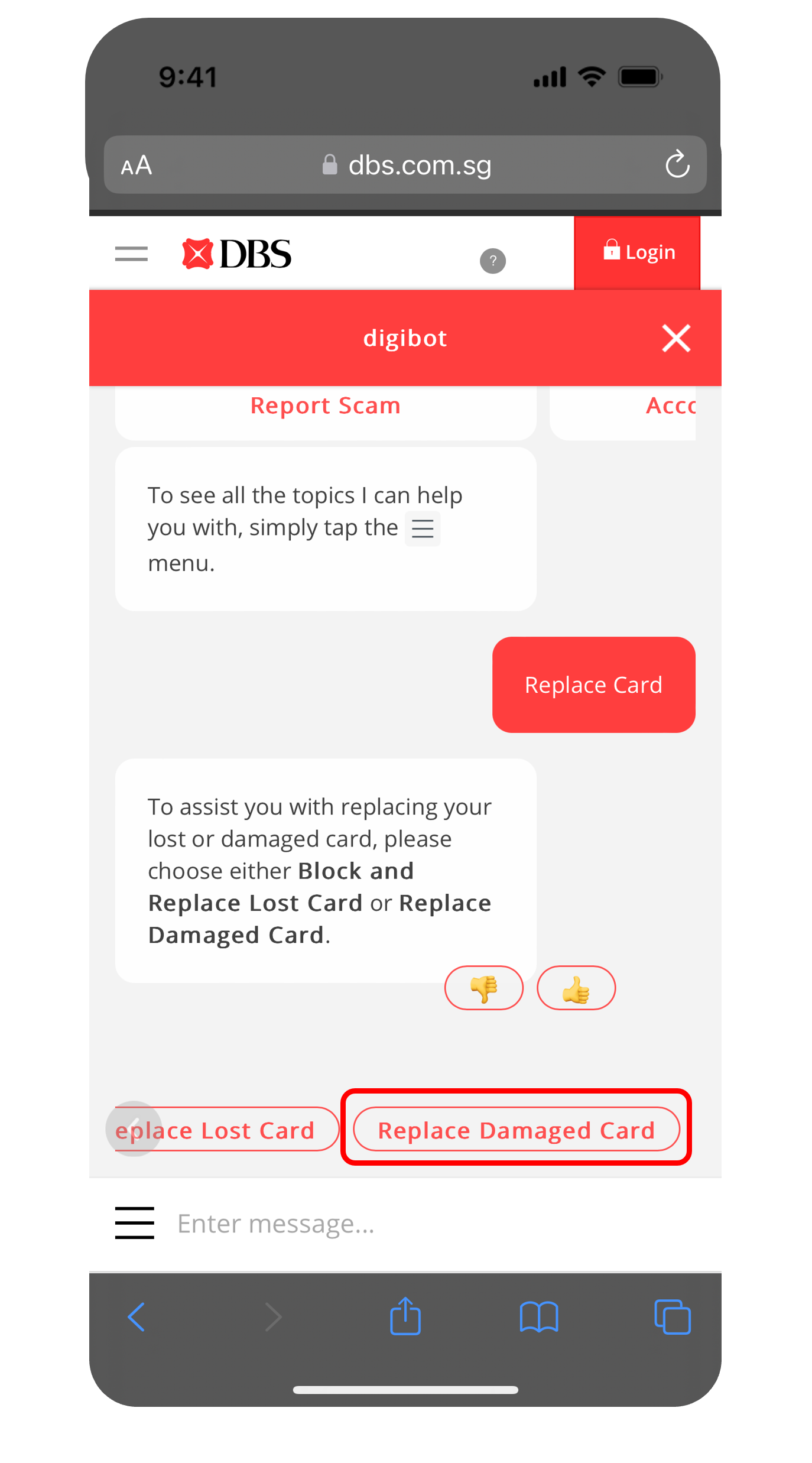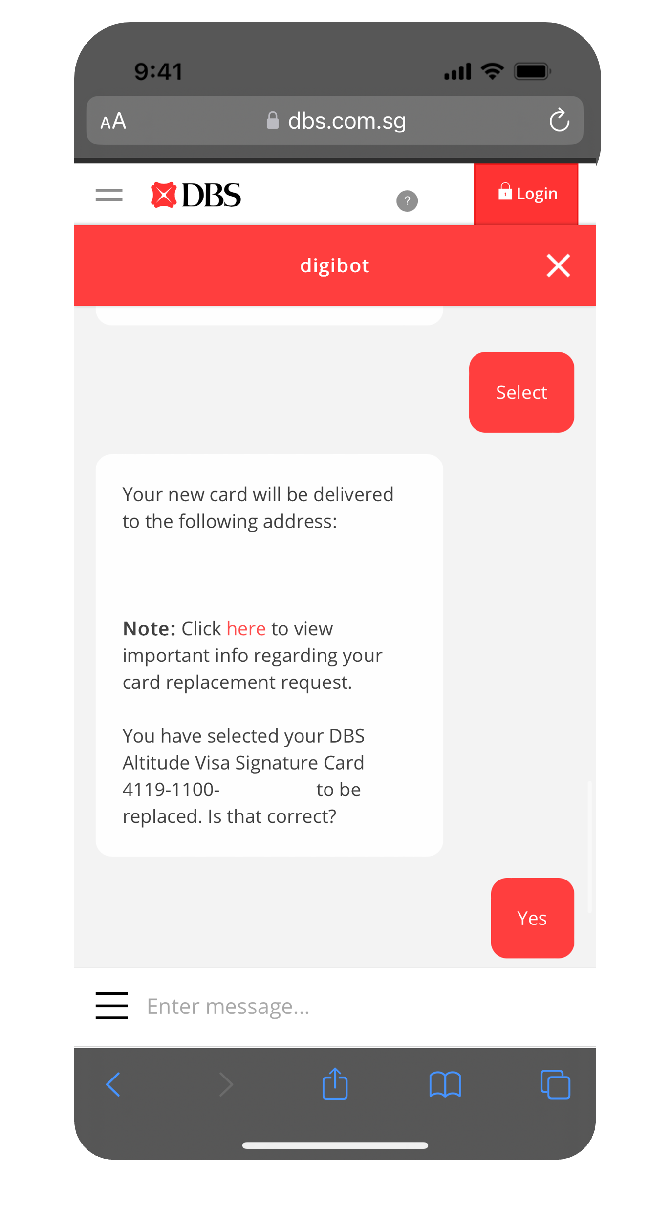 • Please ensure that your address is updated before requesting for a card replacement. Need to update your address? Learn More.