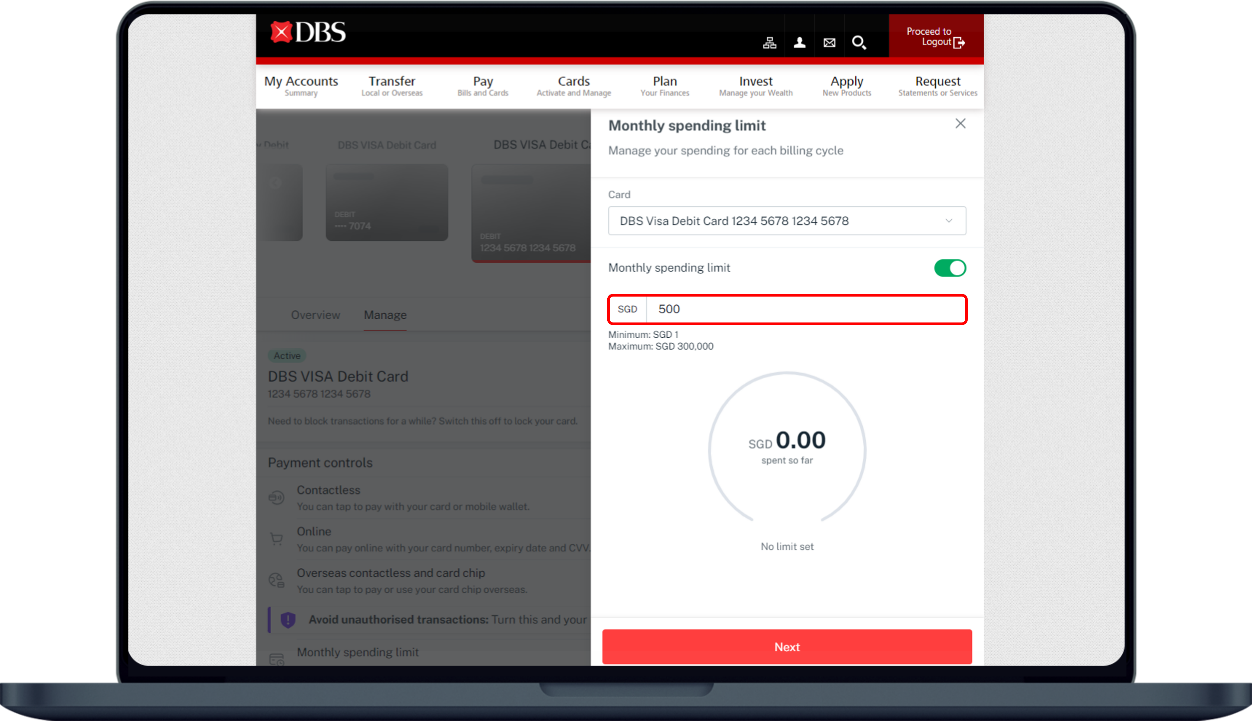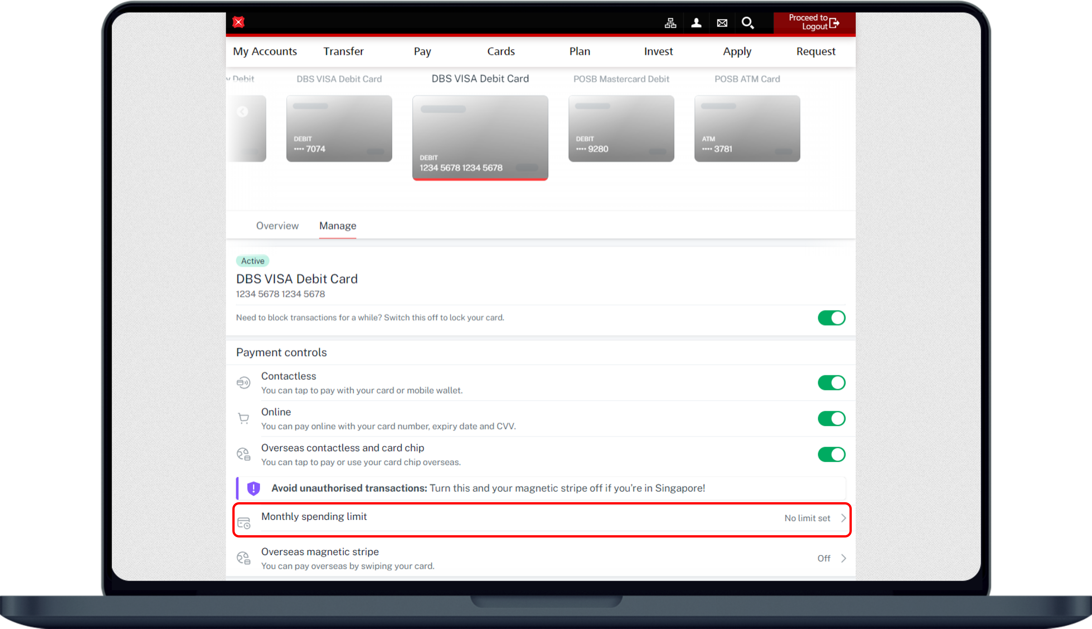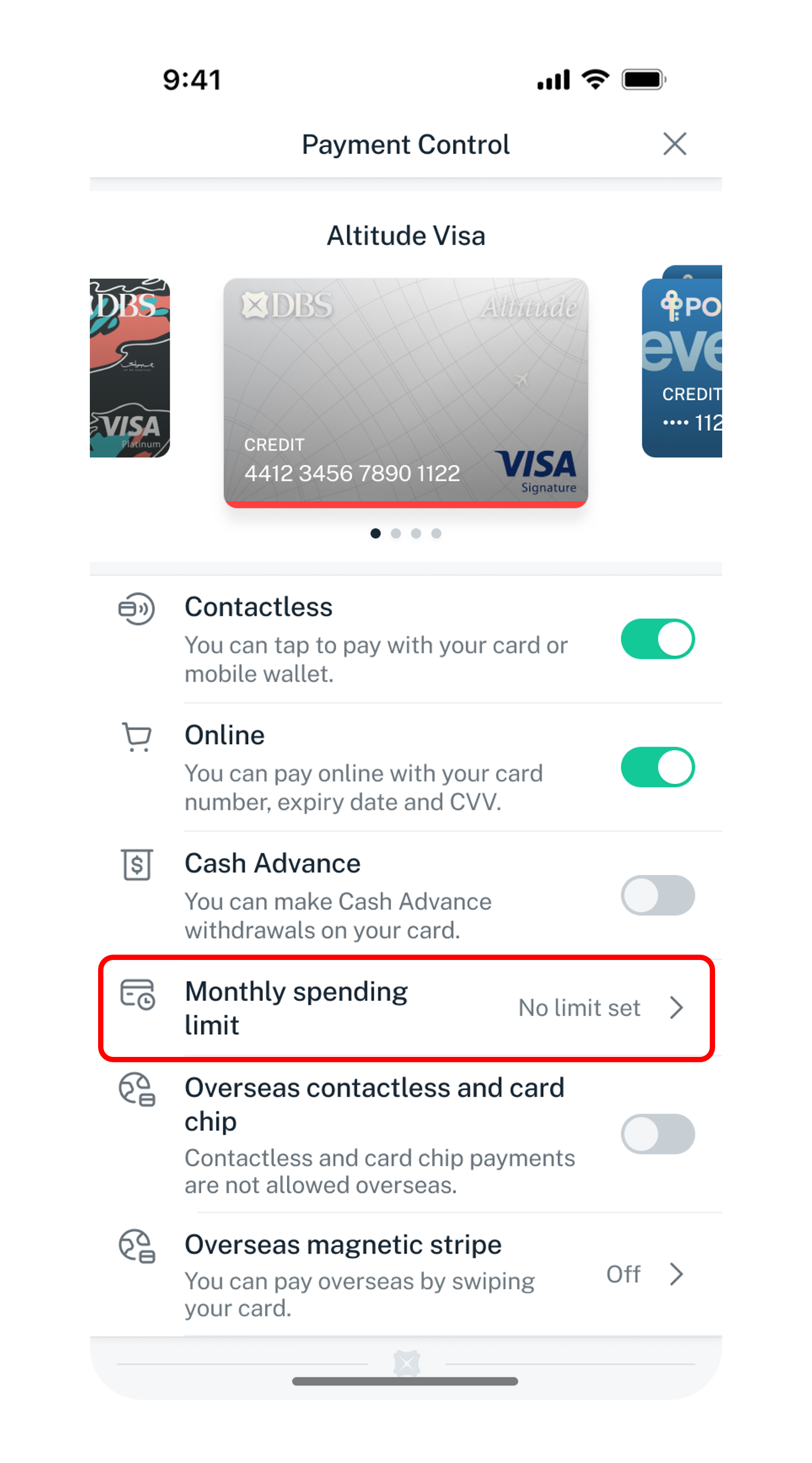 Learn how you can set monthly spending limits for your credit/debit cards using payment control via digibank.