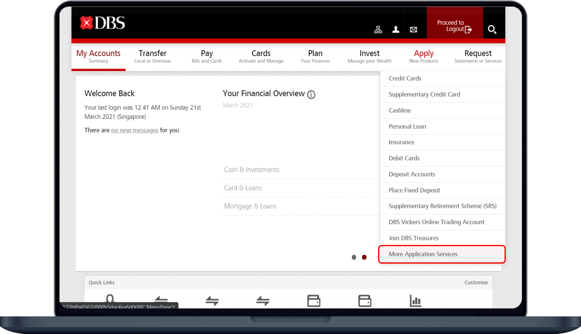 - Log in to digibank online with your User ID & PIN.