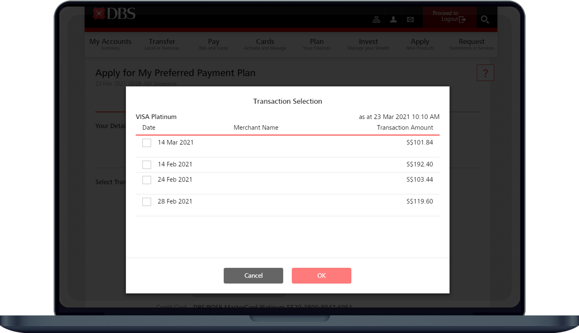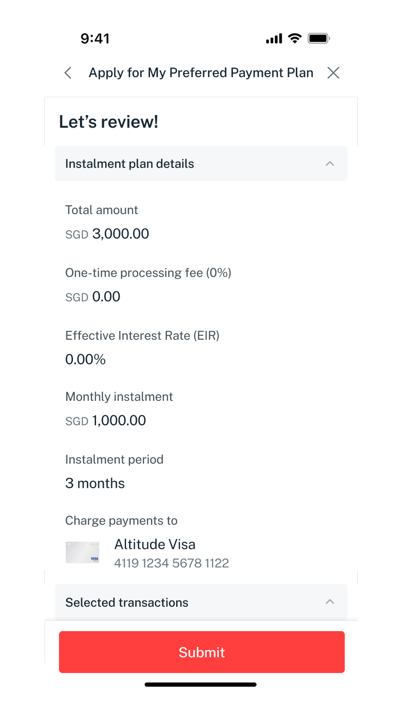 (You can select up to 10 transactions in one plan) - Select your preferred instalment plan and click Next.