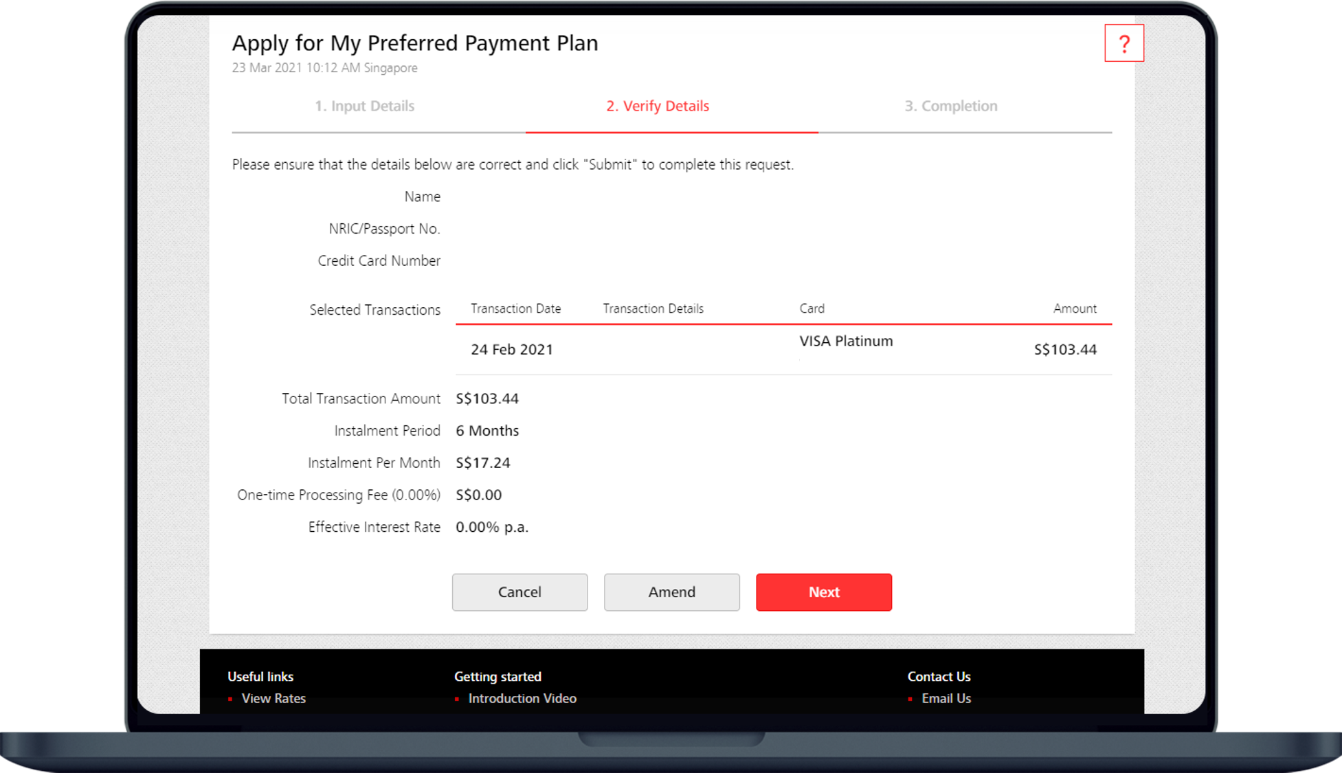 For example, based on a transaction amount of S$2,700: