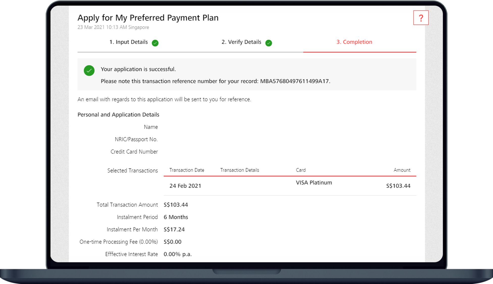 - Minimum amount required for MP3 application is S$100 (in a single transaction);