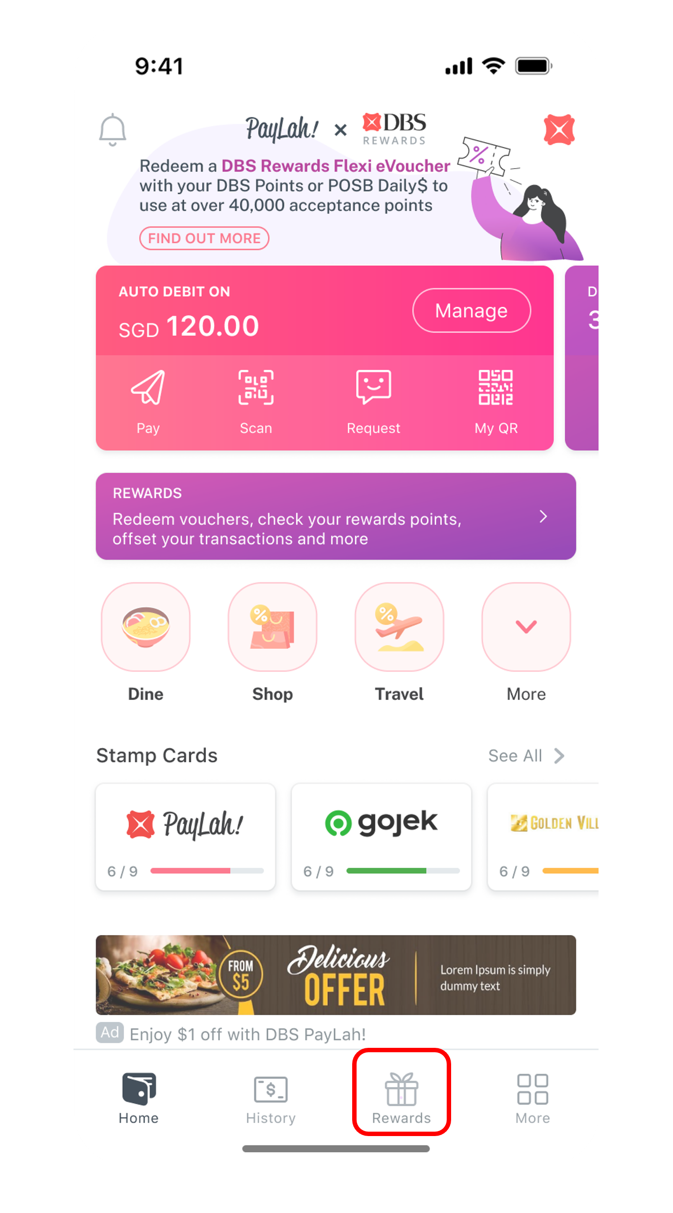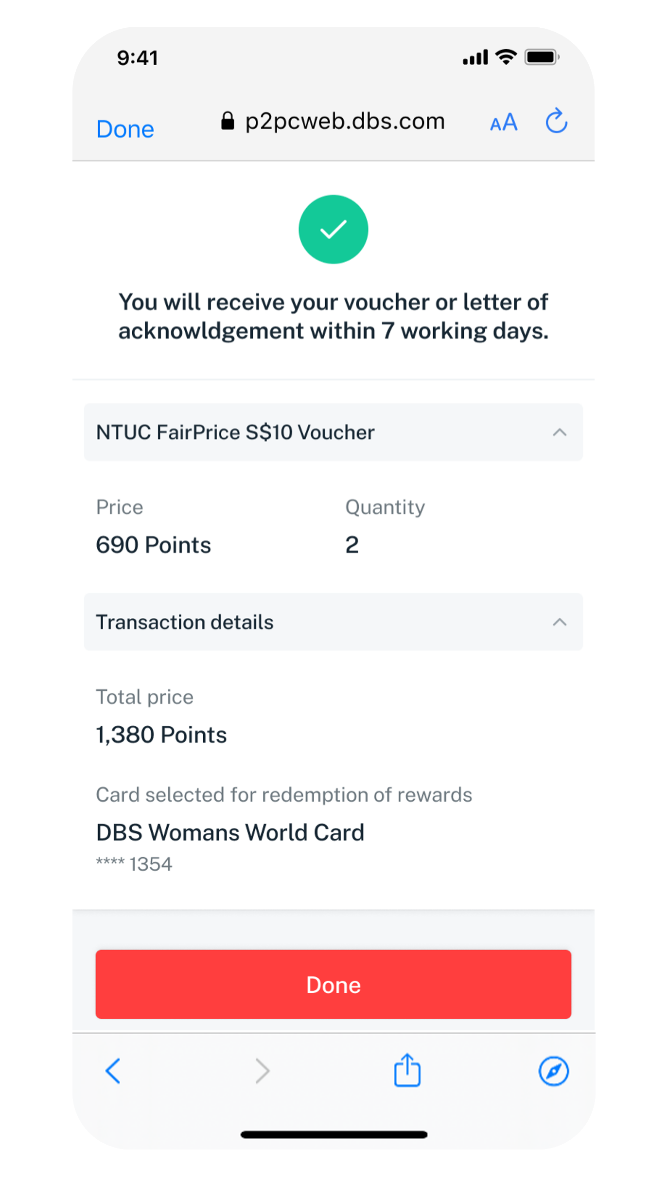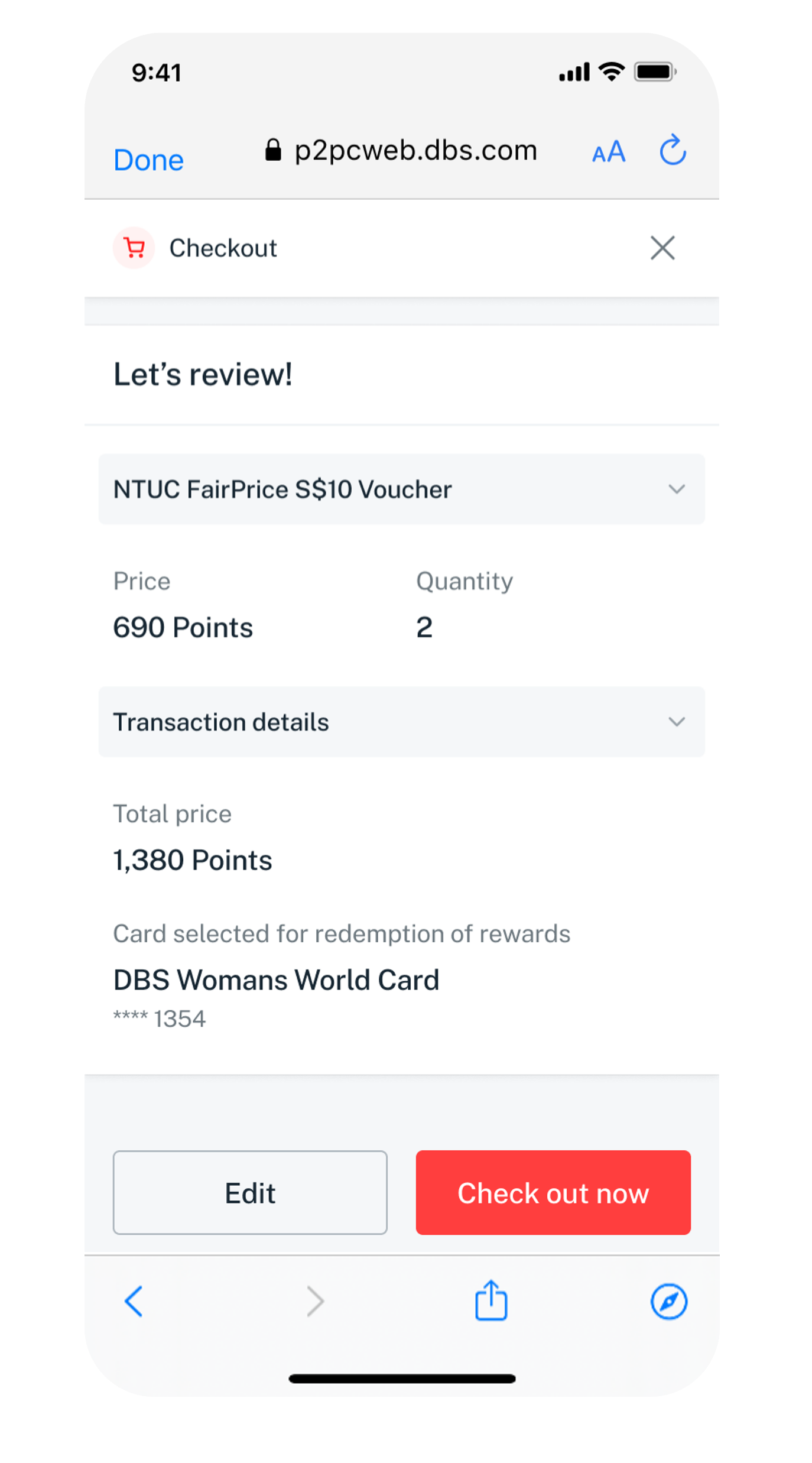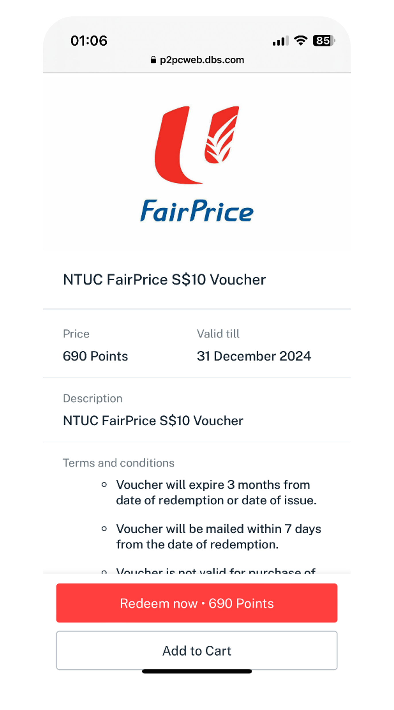 You can redeem DBS Points, Daily$ & Safra$ easily via DBS PayLah!, digibank, DBS Rewards website, or Pay with Points In-Store and online on participating merchants’ website/mobile app.
