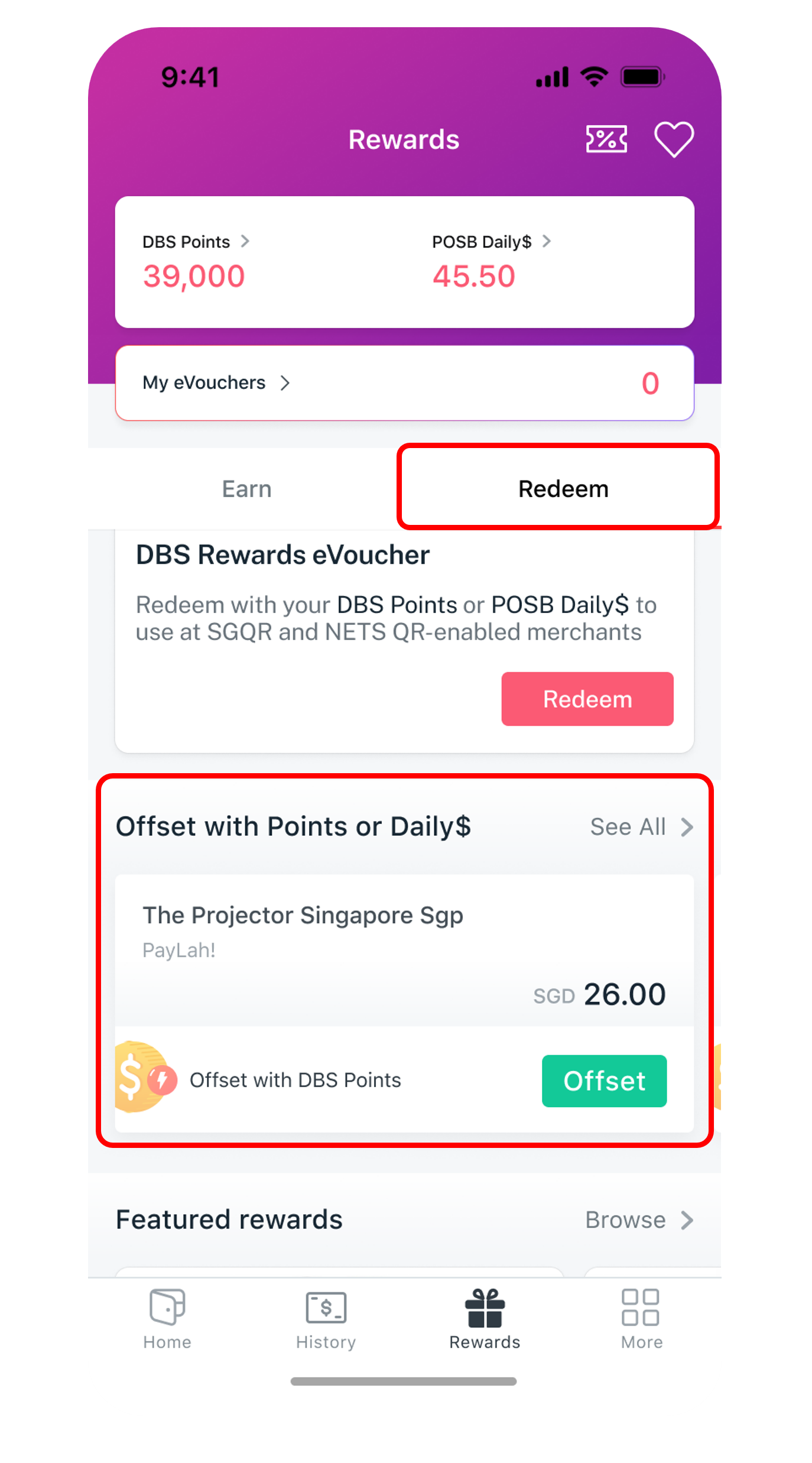 Redeem Rewards or Offset Spending using DBS Points, Daily$ & Safra$