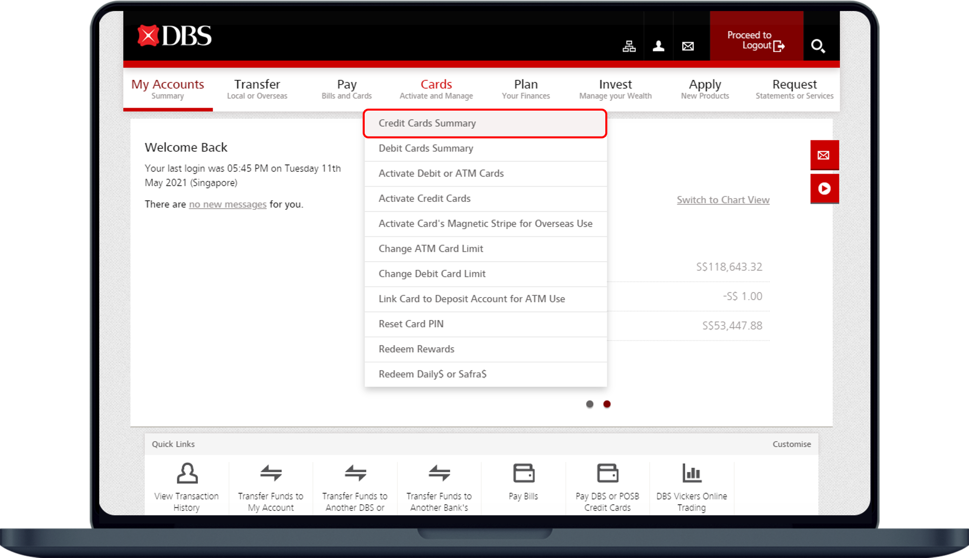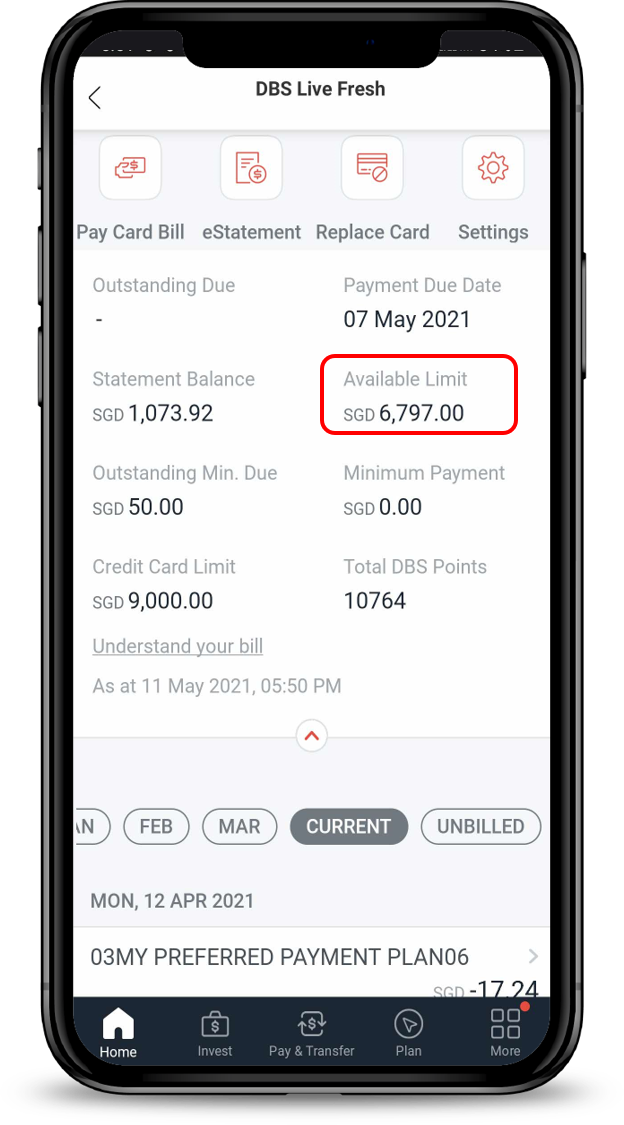 There are various channels which you may check your credit card available limit with us. The most convenient method would be via digibank mobile.