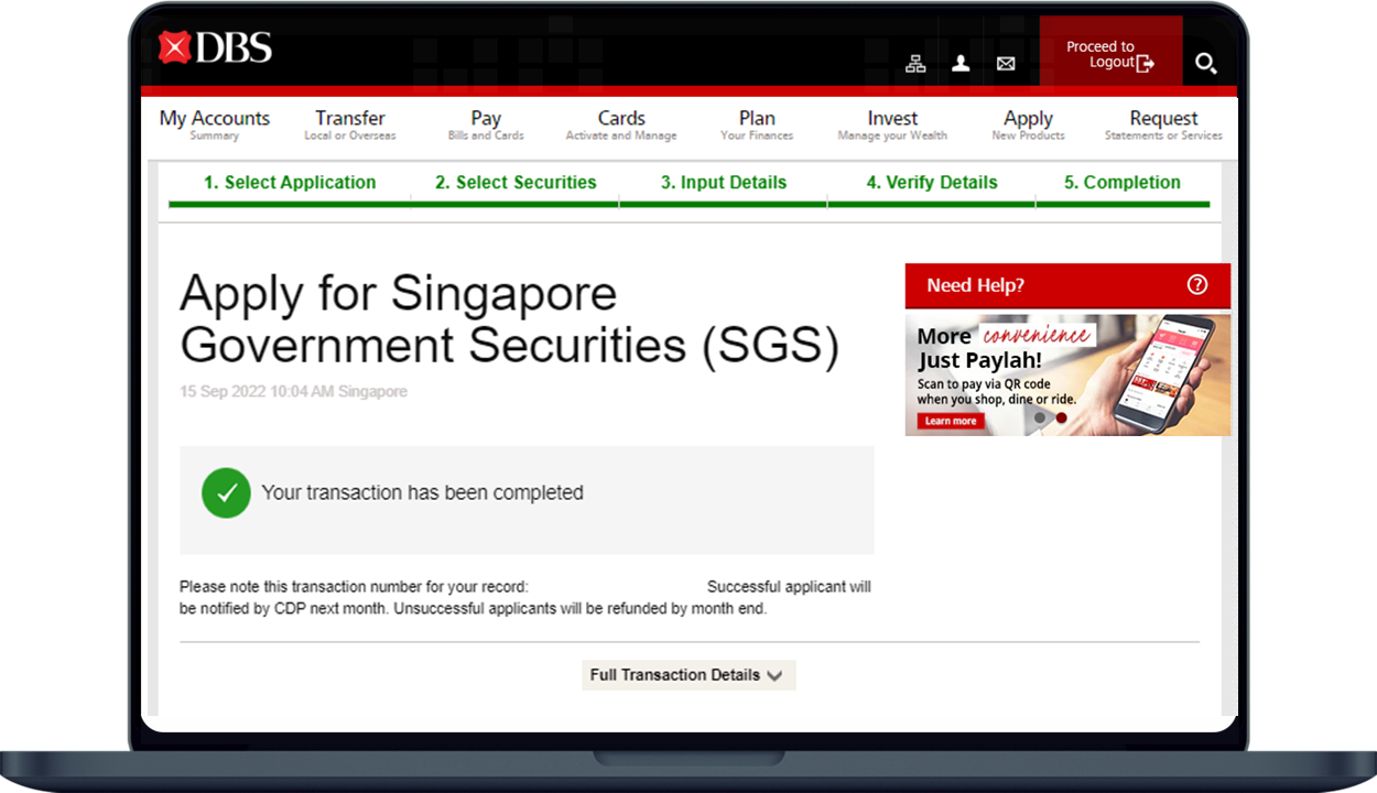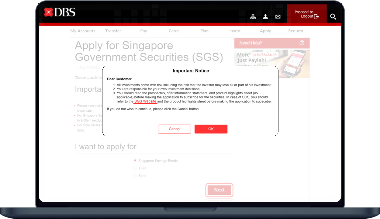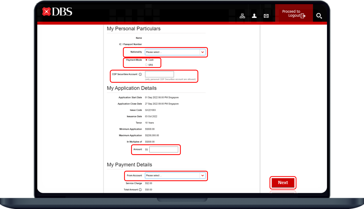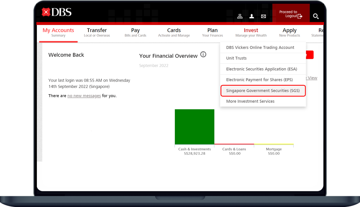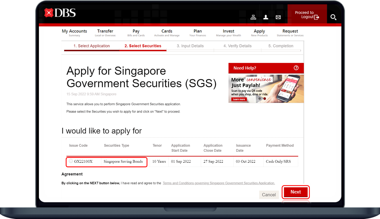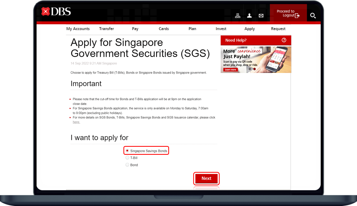 - Select SGS / Singapore Savings Bonds, followed by Singapore Savings Bond Application.