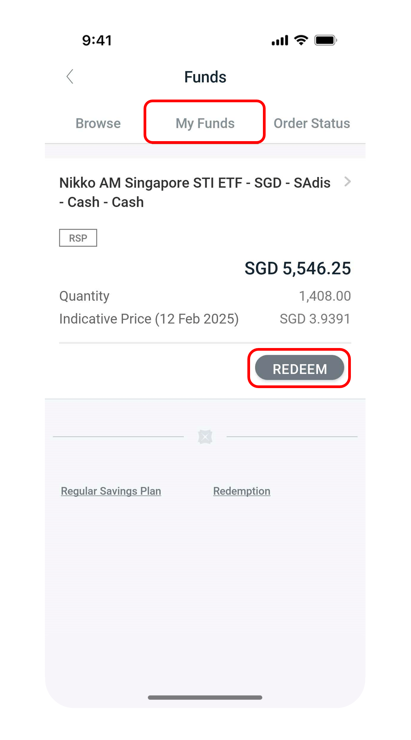 - Click on Sell for the ETF/ Unit Trust plan that you wish to redeem for.