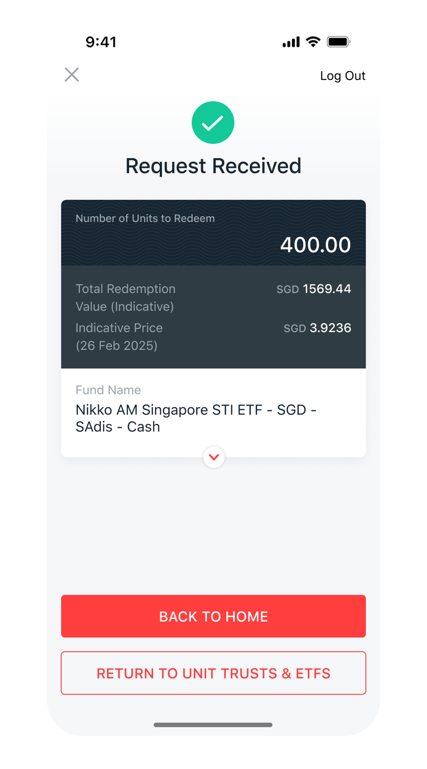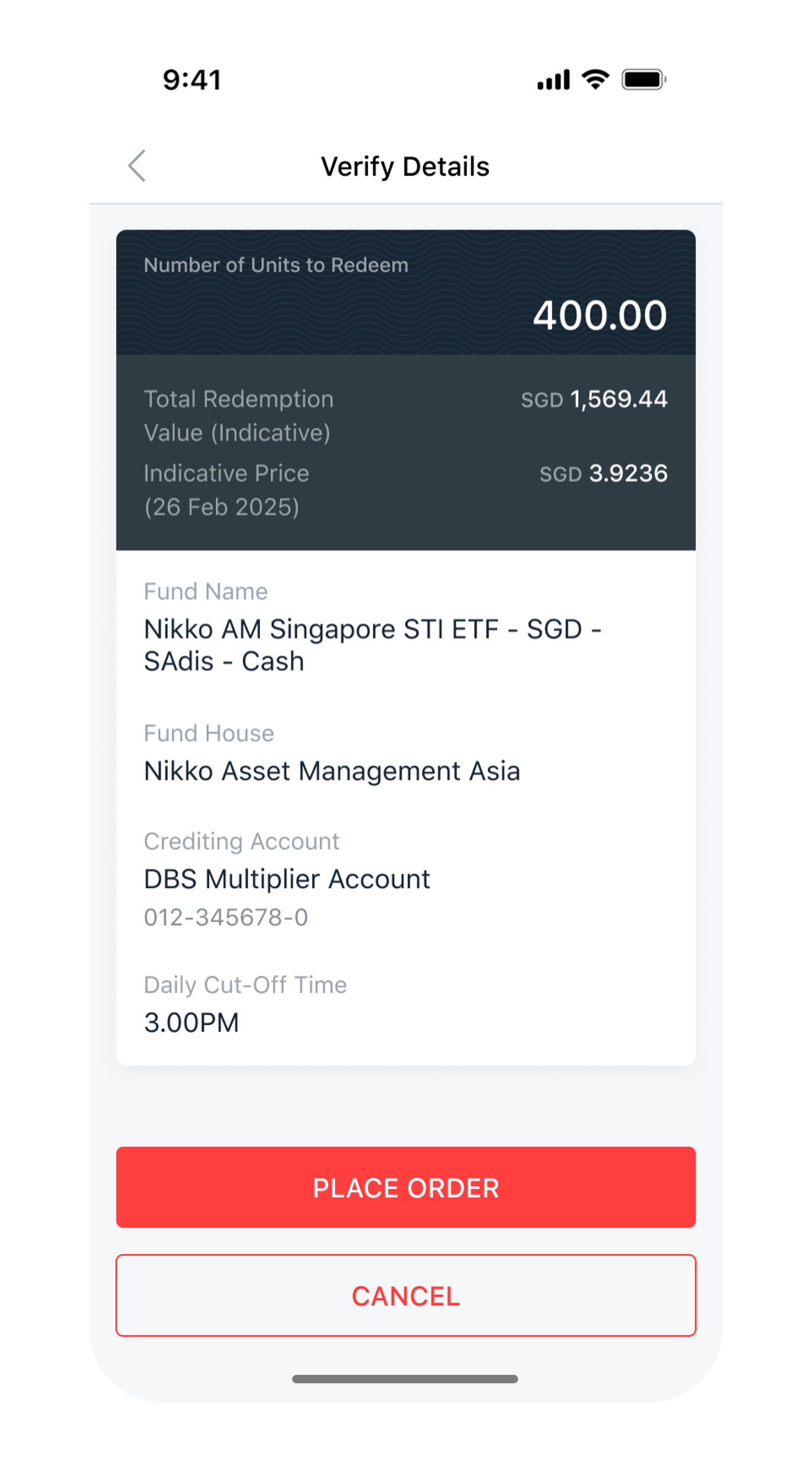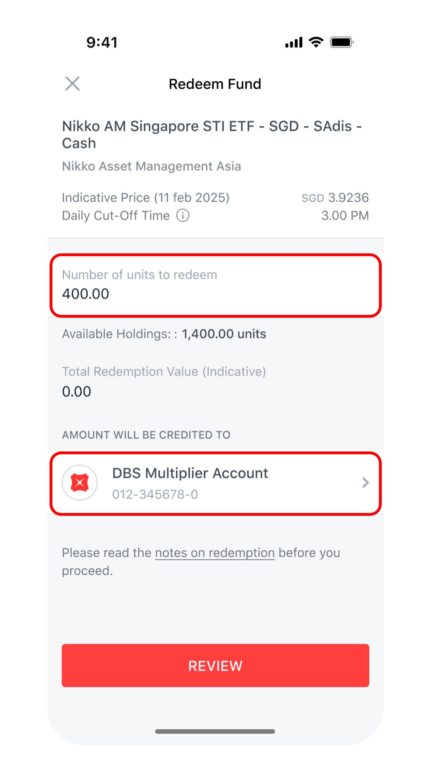 - Redemption proceeds will usually be credited to your designated account within 7 business days from the submission of your redemption request on digibank online.