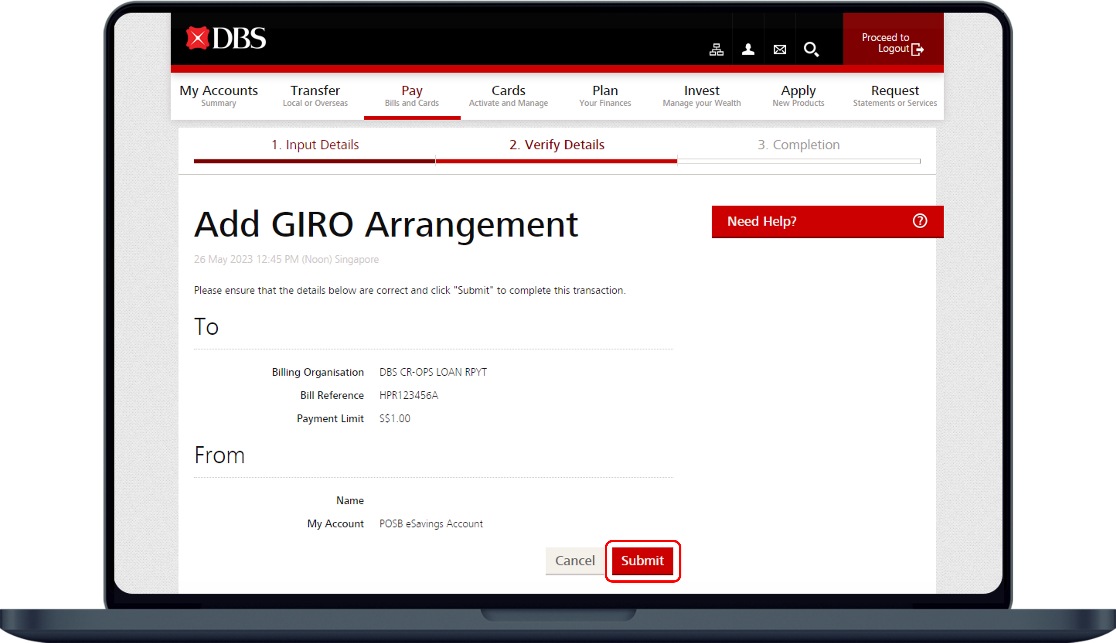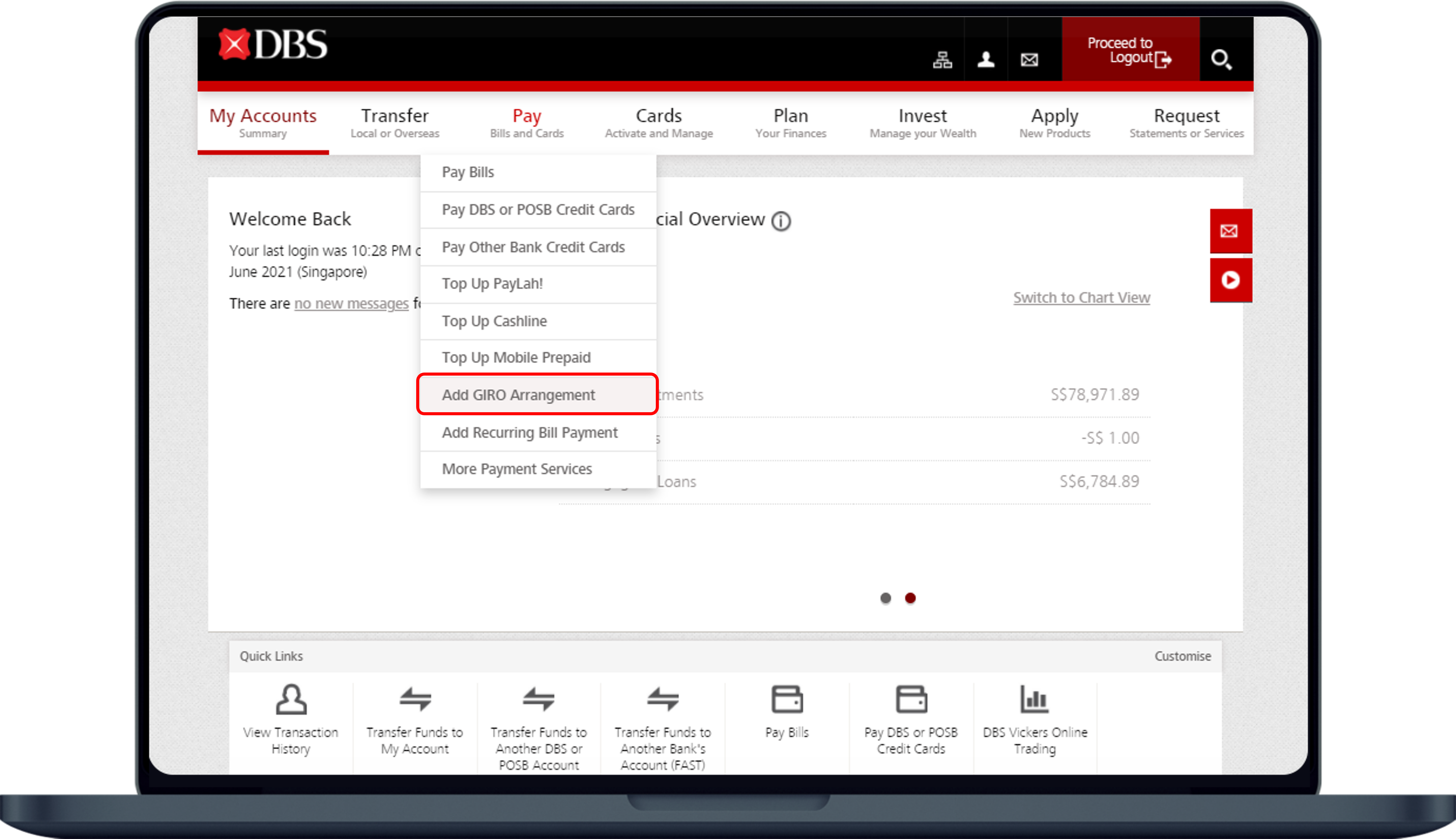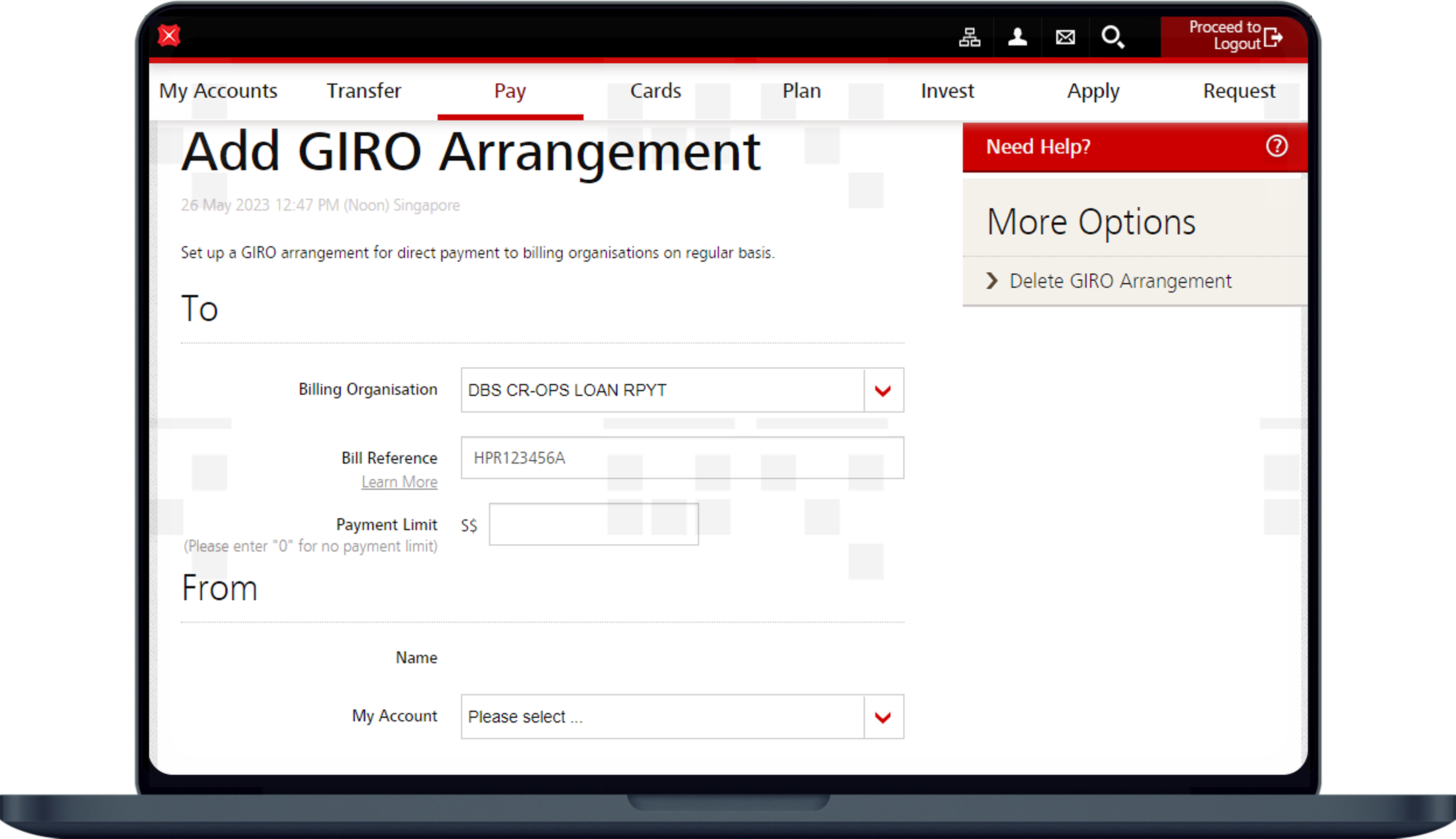 digibank online (Giro arrangement for DBS/POSB accounts)