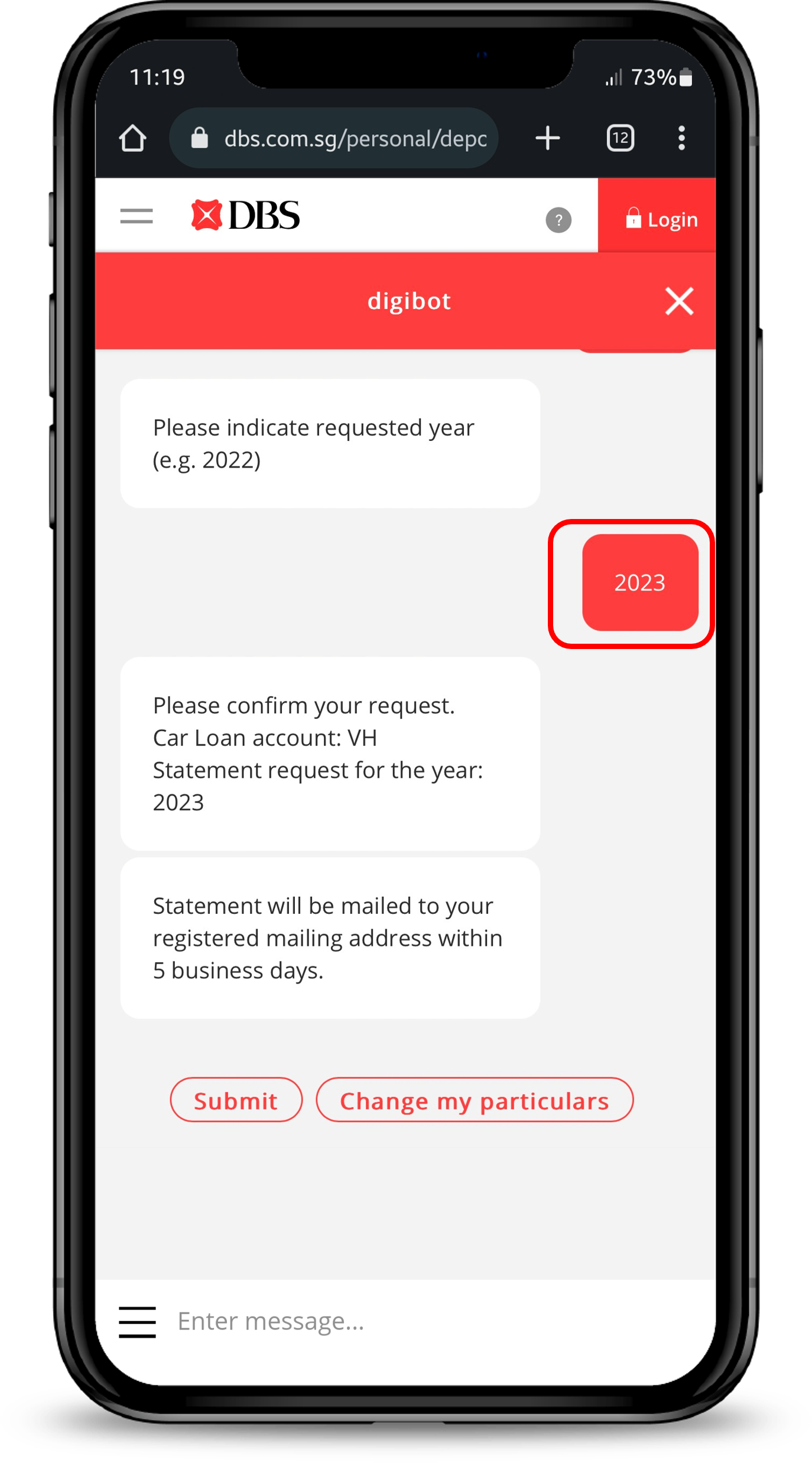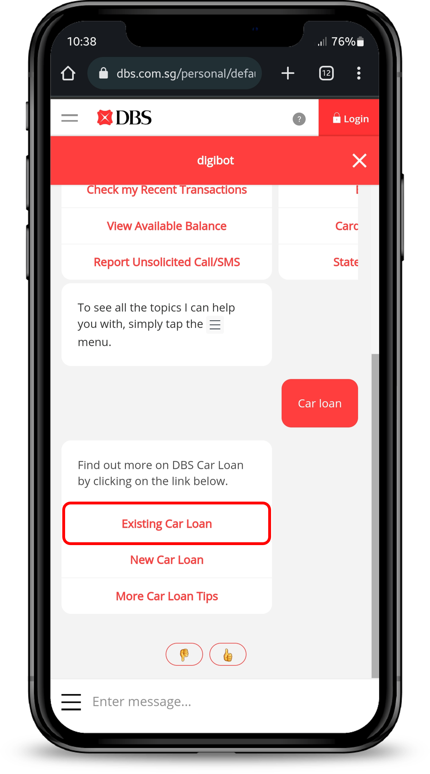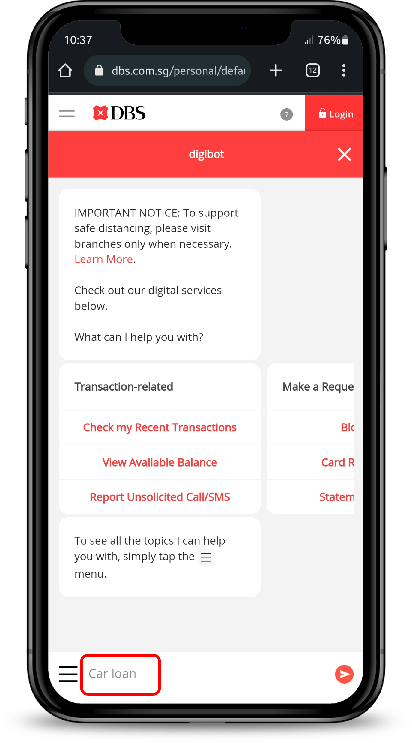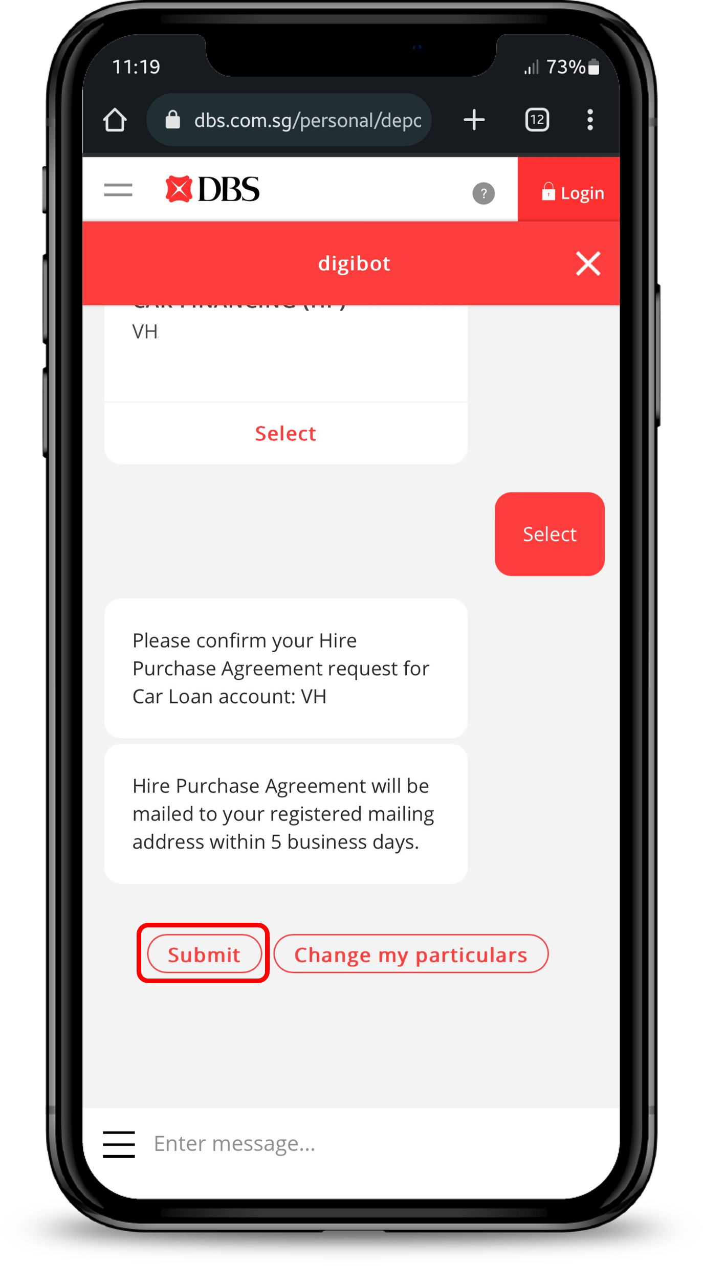There are various channels which you may repay your car loan with us. The most convenient method would be via DBS digibot.